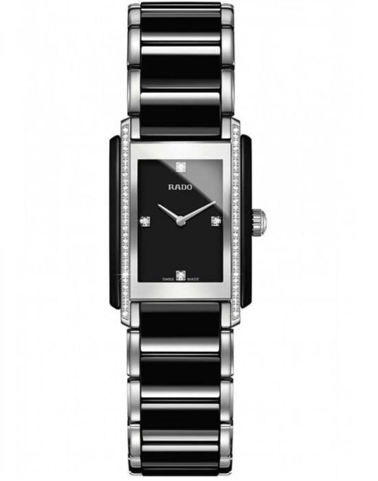 Модель из нержавеющей стали и высокотехнологичной керамикиВысокотехнологичная керамикаИнновационный запатентованный Rado материал с гладкой или матовой поверхностью. Керамика за счёт кристаллической структуры обладает повышенной устойчивостью от возникновения царапин. Материал способен принимать температуру тела человека, обеспечивая невероятный комфорт при ношении. воплощает собой истинную роскошь, великолепное исполнение поражает. Наручные часы инкрустированы бриллиантами, 58 драгоценных камней расположены на корпусе и 4 используются вместо часовых индексов на циферблате. Высокоточный кварцевый механизм ETA 976.001. Стекло из сапфира противостоит образованию царапин. Водостойкость при давлении 5 бар. Габариты: 33 x 23 x 6,5 мм.