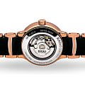 Люксовая модель позволит чувствовать себя уверенно при любых обстоятельствах. Минималистичный чёрный циферблат стильно смотрится в сочетании с PVD-покрытиемPVDУльтратонкое покрытие наносится в технике вакуумного напыления, сочетает в себе нитрид титана особой прочности со слоем золота или оксида хрома. Несёт в себе декоративную или защитную функцию. цвета розового золота для стального корпуса и браслета. Автоматическая система завода. Швейцарский механизм ETA 2671 с запасом хода до 38 часов. Браслет со вставками высокотехнологичной керамикиВысокотехнологичная керамикаИнновационный запатентованный Rado материал с гладкой или матовой поверхностью. Керамика за счёт кристаллической структуры обладает повышенной устойчивостью от возникновения царапин. Материал способен принимать температуру тела человека, обеспечивая невероятный комфорт при ношении.. Сапфировое стекло. Водонепроницаемость 30 метров. . Окошко индикации числа. Диаметр корпуса: 28 мм.