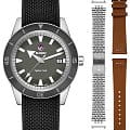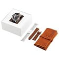 В комплекте идет сменный стальной браслет с раскладывающейся застежкой, а также кожаный ремешок с классической застежкой. Оба варианта позволяют менять внешний вид часов в зависимости от настроения или случая. Дополнительно прилагается подарочный кожаный дорожный чехол, который обеспечит безопасность хранения и транспортировки часов.