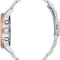 Мужские кварцевые часы Santa Barbara Polo & Racquet Club — это идеальный выбор для тех, кто ценит точность и практичность. Корпус диаметром 42 мм выполнен из нержавеющей стали 316L. БезельБезельВнешний ободок, закрепляющий стекло. В спортивных часах так называется поворотное кольцо с делениями на циферблате, выполняет роль таймера – замеряет отрезки времени на шкале. Неподвижный безель – элемент декора. Однонаправленно вращающийся безель на дайверских часах позволяет фиксировать моменты погружения и выныривания на поверхность. с IP-покрытиемIP-покрытиеМетод ионного напыления. Демонстрирует повышенную устойчивость к истиранию, окислению и химическим веществам. Под воздействием высокого давления и температуры около 1500°C молекулы металла надёжно соединяются с частицами корпуса часов. розового золота, с матовой и полированной отделкой. Циферблат белого цвета оформлен по технологии Sunray («солнечные лучи»), дополнен накладными метками в виде штрихов и фирменным логотипом. Указатели дня недели и даты вынесены на отдельные субциферблаты, также присутствует индикация 24-часового формата времени. Стрелки клиновидной формы, в стиле Dauphine. Циферблат защищён минеральным стекломМинеральное стеклоМинеральное стекло представляет собой искусственно выращенный минерал кварца. Такое стекло отличается особой устойчивостью к повреждениям и царапинам. Уступает по некоторым качествам сапфировому стеклу.. Часы оснащены стальным браслетом с частичным IP-покрытиемIP-покрытиеМетод ионного напыления. Демонстрирует повышенную устойчивость к истиранию, окислению и химическим веществам. Под воздействием высокого давления и температуры около 1500°C молекулы металла надёжно соединяются с частицами корпуса часов. и раскладной застёжкойРаскладная застёжкаТакой тип застёжки используется только на браслетах из металла. Она никогда не раскрывается полностью, происходит разделение на 2 и более частей. Раскладывающая застёжка снизит вероятность потери часов к минимуму.. Водонепроницаемость 50 м позволяет использовать часы в повседневных условиях. Идеальный выбор для тех, кто ценит стиль, точность и надёжность.