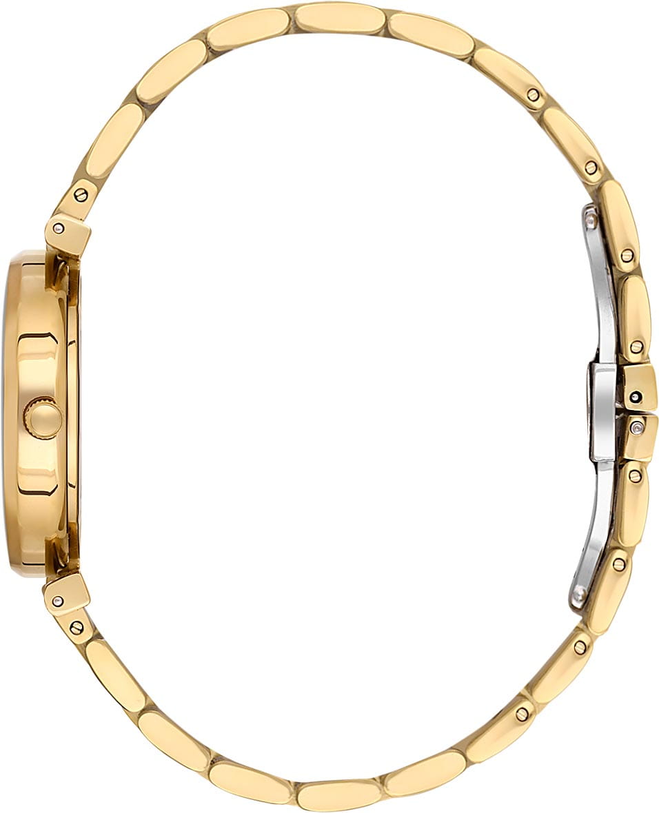 Браслет с PVD-покрытиемPVDУльтратонкое покрытие наносится в технике вакуумного напыления, сочетает в себе нитрид титана особой прочности со слоем золота или оксида хрома. Несёт в себе декоративную или защитную функцию. оснащён надёжной застёжкой «бабочка»Застёжка "бабочка"Такой вид застёжки дополняется предохранителями, помогающими избежать случайного раскрытия браслета. Обладают изящным исполнением. , которая обеспечивает удобство посадки и сохраняет цельность внешнего вида.