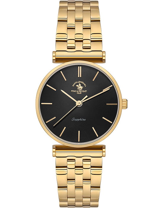 Santa Barbara Polo & Racquet Club — женские наручные часы в элегантном минималистичном стиле, подчёркивающем статус и изысканность владельца. Корпус изготовлен из нержавеющей стали с PVD-покрытиемPVDУльтратонкое покрытие наносится в технике вакуумного напыления, сочетает в себе нитрид титана особой прочности со слоем золота или оксида хрома. Несёт в себе декоративную или защитную функцию., которая придаёт часам благородный оттенок и дополнительную стойкость к износу.