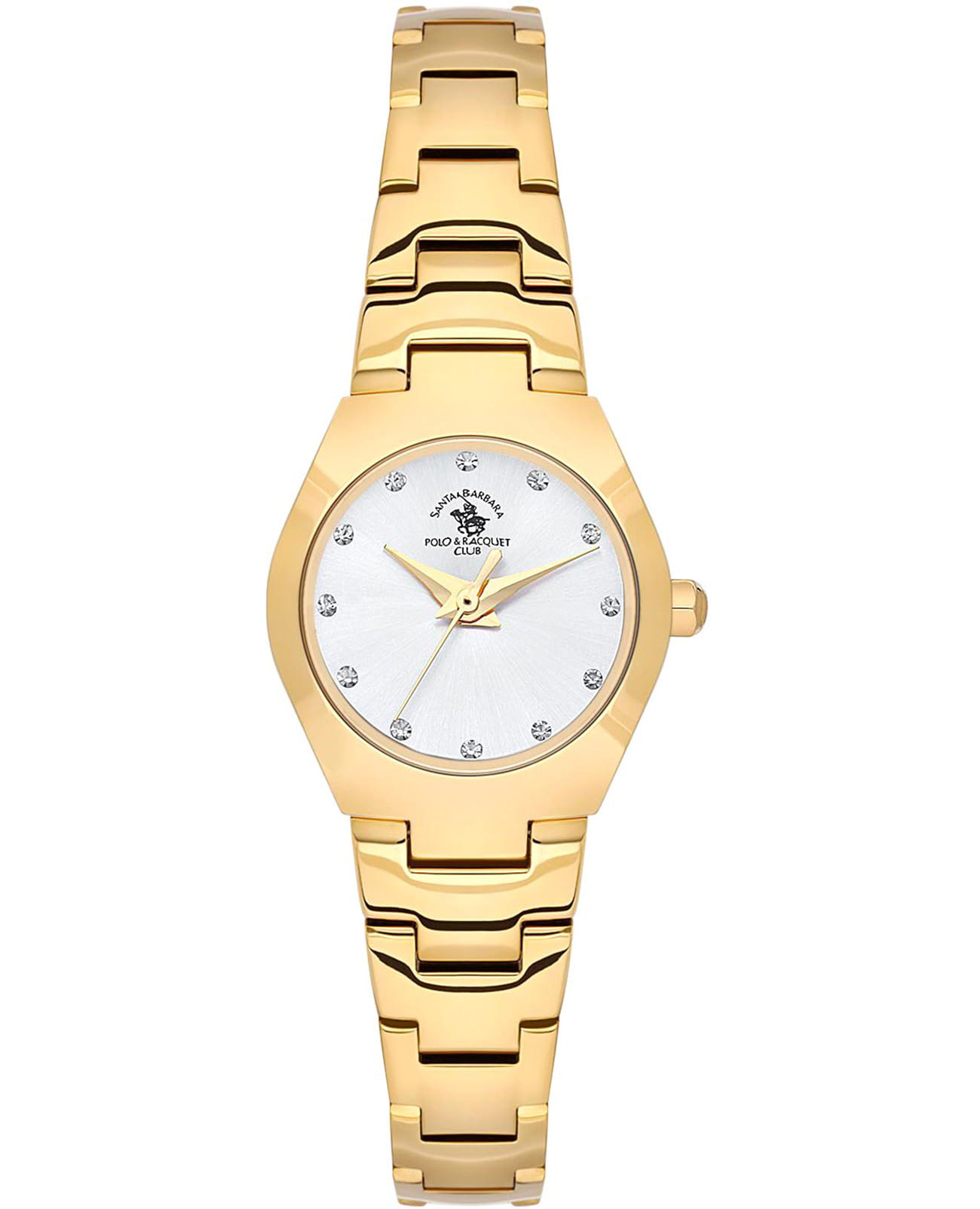 Женские кварцевые часы Santa Barbara Polo & Racquet Club — это миниатюрный и изысканный аксессуар. Корпус диаметром 24 мм выполнен из стали 316L с IP-покрытиемIP-покрытиеМетод ионного напыления. Демонстрирует повышенную устойчивость к истиранию, окислению и химическим веществам. Под воздействием высокого давления и температуры около 1500°C молекулы металла надёжно соединяются с частицами корпуса часов.. Циферблат белого цвета выполнен по технологии Sunray («солнечные лучи») и оформлен точками, инкрустированными кристаллами, и стрелками в стиле Dauphine. Циферблат защищён минеральным стекломМинеральное стеклоМинеральное стекло представляет собой искусственно выращенный минерал кварца. Такое стекло отличается особой устойчивостью к повреждениям и царапинам. Уступает по некоторым качествам сапфировому стеклу.. Механизм — японское кварцевое движение калибра Seiko TMI VJ21C1. Заводная головка выполнена в форме болта. Часы оснащены стальным браслетом с IP-покрытиемIP-покрытиеМетод ионного напыления. Демонстрирует повышенную устойчивость к истиранию, окислению и химическим веществам. Под воздействием высокого давления и температуры около 1500°C молекулы металла надёжно соединяются с частицами корпуса часов. на раскладной застёжкеРаскладная застёжкаТакой тип застёжки используется только на браслетах из металла. Она никогда не раскрывается полностью, происходит разделение на 2 и более частей. Раскладывающая застёжка снизит вероятность потери часов к минимуму.. Водонепроницаемость 50 м позволяет использовать часы в повседневных условиях. Идеальный выбор для тех, кто ценит американское качество и элегантный дизайн.