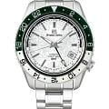 Модель SBGJ277G из коллекции Grand Seiko Sport — это высокоточный дайверский инструмент, сочетающий в себе передовые технологии и японскую эстетику. Корпус и браслет выполнены из нержавеющей стали, обеспечивая лёгкость и устойчивость к коррозии. Циферблат с матовой отделкой и крупными метками, покрытыми люминесцентным покрытиемЛюминесцентное покрытиеПозволяет считывать показания времени в темноте. Производители наносят на стрелки, часовые индексы, безель или поверхность циферблата светонакопительный состав, дающий холодное свечение., что гарантирует отличную читаемость в любых условиях. Часы оснащены автоматическим механизмом Hi-Beat 36000 GMT 9S86 и запасом хода до 55 часов. Индикатор запаса хода. Диаметр корпуса составляет 44.2 мм, толщина 14.8 мм. Циферблат защищён сапфировым стекломСапфировое стеклоПрочный и надёжный материал из кристалла сапфира синтетического происхождения, характеризующийся особой твёрдостью и устойчивостью к царапинам и повреждениям. с антибликовым покрытиемАнтибликовое покрытиеСлой оксида металла в 0,13-0,3 микрон, благодаря которому стекло часов не бликует и не отражает свет. Антибликовое покрытие уменьшает отражение света в 10 раз, обеспечивая отличную читаемость показателей циферблата. на внутренней стороне. GMTGMTОтображение времени второго часового пояса.Такая функция особенно актуальна для путешественников и бизнесменов,которые общаются с людьми из разных стран,теперь вы всегда будете знать,какой час у вашего партнёра или близкого человека.. Установлена раскладная застёжкаРаскладная застёжкаТакой тип застёжки используется только на браслетах из металла. Она никогда не раскрывается полностью, происходит разделение на 2 и более частей. Раскладывающая застёжка снизит вероятность потери часов к минимуму. обеспечивает комфортное ношение. Вращающийся безельБезельВнешний ободок, закрепляющий стекло. В спортивных часах так называется поворотное кольцо с делениями на циферблате, выполняет роль таймера – замеряет отрезки времени на шкале. Неподвижный безель – элемент декора. Однонаправленно вращающийся безель на дайверских часах позволяет фиксировать моменты погружения и выныривания на поверхность. с PVD-покрытиемPVDУльтратонкое покрытие наносится в технике вакуумного напыления, сочетает в себе нитрид титана особой прочности со слоем золота или оксида хрома. Несёт в себе декоративную или защитную функцию. придаёт часам спортивный характер. Модель обладает водонепроницаемостью до 200 метров идеальным выбором для профессиональных дайверов и ценителей надёжных часов.