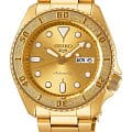 Часы Seiko 5 Sports SRPE74K1 представляют собой элегантное сочетание классического дизайна и современных технологий. Корпус диаметром 42,5 мм выполнен из нержавеющей стали с PVD-покрытиемPVDУльтратонкое покрытие наносится в технике вакуумного напыления, сочетает в себе нитрид титана особой прочности со слоем золота или оксида хрома. Несёт в себе декоративную или защитную функцию. золотого цвета, придающим часам утончённый вид. Циферблат золотистого цвета защищён минеральным стекломМинеральное стеклоМинеральное стекло представляет собой искусственно выращенный минерал кварца. Такое стекло отличается особой устойчивостью к повреждениям и царапинам. Уступает по некоторым качествам сапфировому стеклу. с повышенной прочностью. ​​