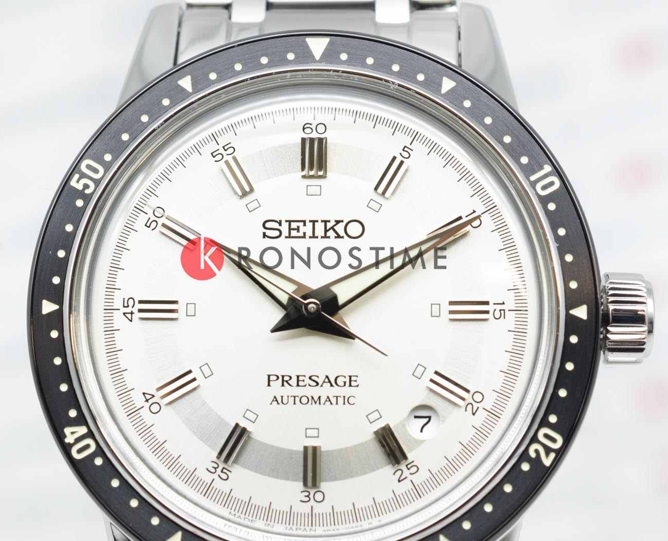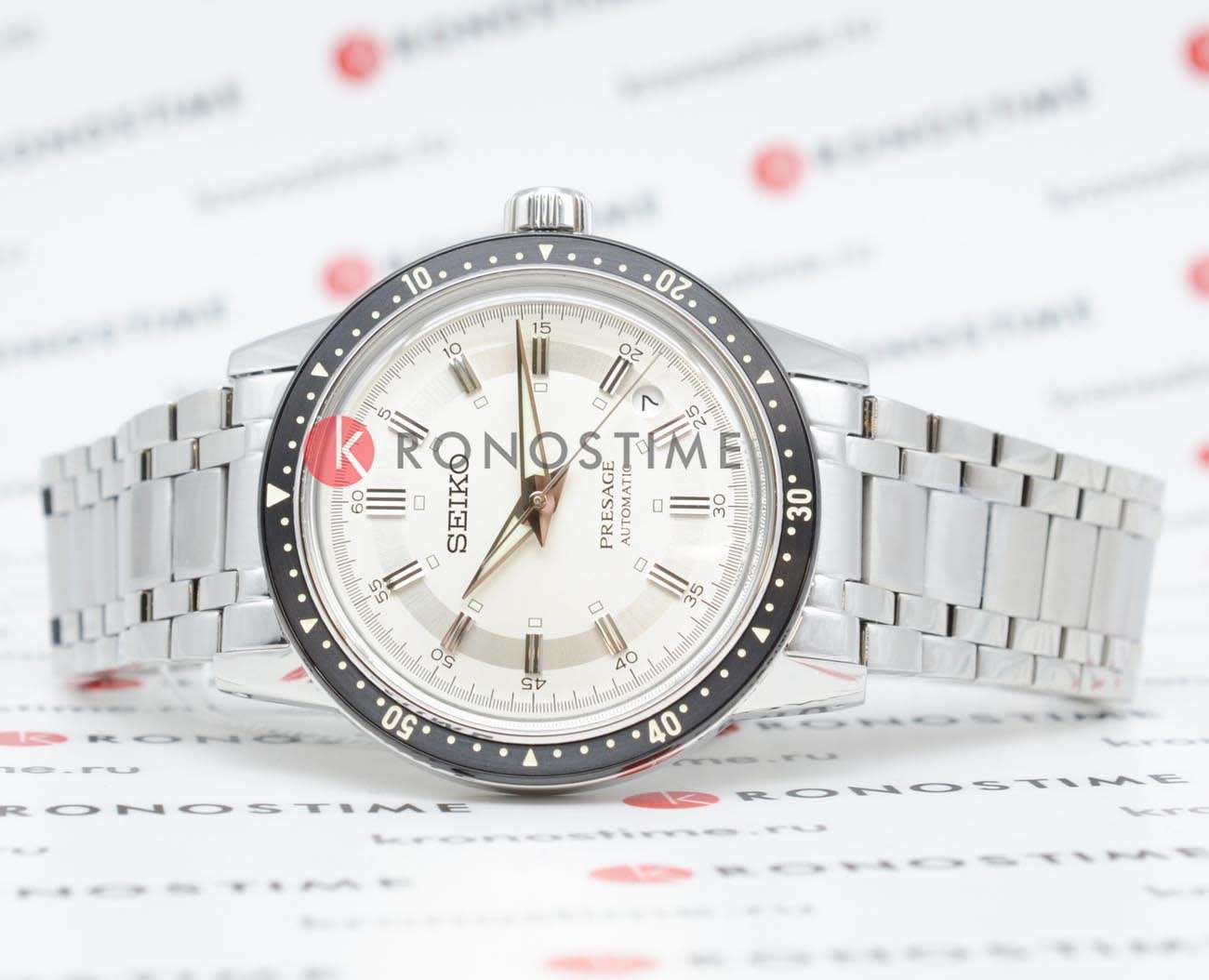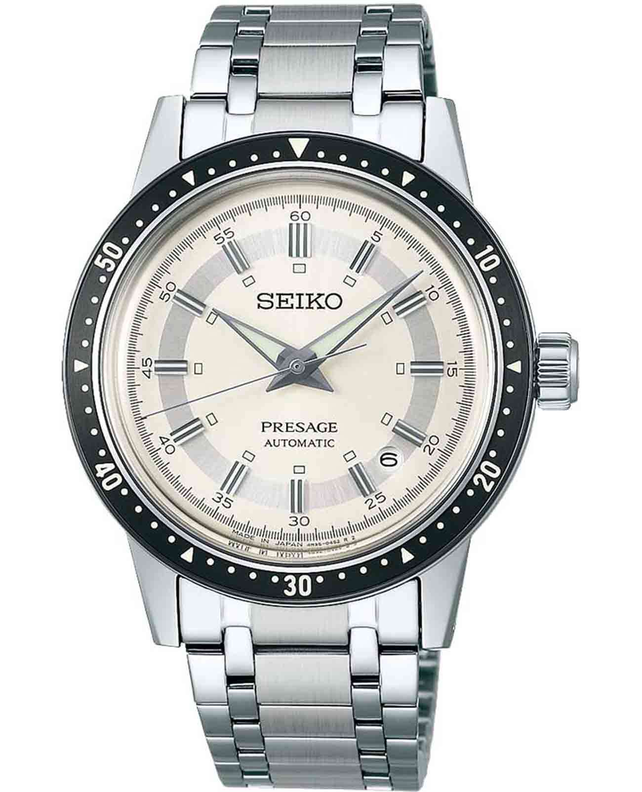 Мужские наручные часы Seiko SRPK61J1 из коллекции Presage Style 60s сочетают в себе классический дизайн и надежность современных технологий. Модель обладает круглым корпусом, изготовленным из нержавеющей стали, что обеспечивает высокую устойчивость к внешним воздействиям . Браслет также выполнен из нержавеющей стали с раскладной застежкойРаскладной замокДанный вариант застежки используется только на часах с металлическим браслетом. Отличительная особенность такого крепления в том, что длина браслета становится универсальной и вы можете самостоятельно отрегулировать нужный вам размер – застежка просто двигается по браслету часов., гарантирующей комфортное ношение .  БезельБезельВнешний ободок, закрепляющий стекло. В спортивных часах так называется поворотное кольцо с делениями на циферблате, выполняет роль таймера – замеряет отрезки времени на шкале. Неподвижный безель – элемент декора. Однонаправленно вращающийся безель на дайверских часах позволяет фиксировать моменты погружения и выныривания на поверхность. с PVD-покрытиемPVDУльтратонкое покрытие наносится в технике вакуумного напыления, сочетает в себе нитрид титана особой прочности со слоем золота или оксида хрома. Несёт в себе декоративную или защитную функцию.. Циферблат часов украшен текстурой, которая подчеркивает винтажный стиль модели. Для защиты используется минеральное стеклоМинеральное стеклоМинеральное стекло представляет собой искусственно выращенный минерал кварца. Такое стекло отличается особой устойчивостью к повреждениям и царапинам. Уступает по некоторым качествам сапфировому стеклу. Hardlex Crystal, обеспечивающее прочную защиту от царапин . Часы работают на автоматическом механизме с калибром 4R35, который включает возможность ручного завода и обладает запасом хода до 41 часа . Часы также оснащены люминесцентным покрытиемЛюминесцентное покрытиеПозволяет считывать показания времени в темноте. Производители наносят на стрелки, часовые индексы, безель или поверхность циферблата светонакопительный состав, дающий холодное свечение. на стрелках и метках, обеспечивающим отличную видимость в темноте, а также имеет водонепроницаемость WR 50, что позволяет защитить корпус от случайных брызг и кратковременного контакта с водой. Вдохновленные культурой 60-х годов, эти часы демонстрируют уникальный стиль и внимание к деталям.