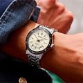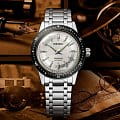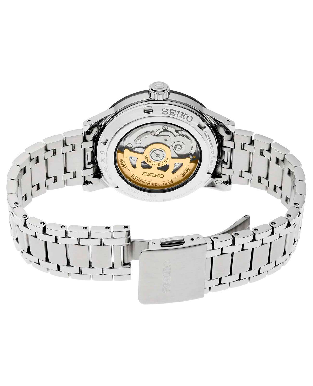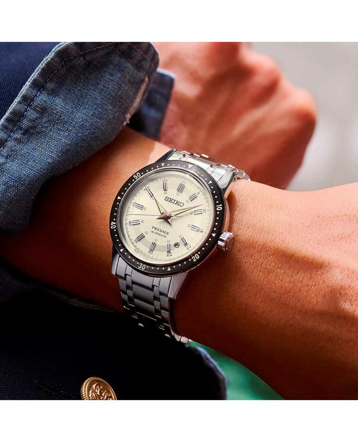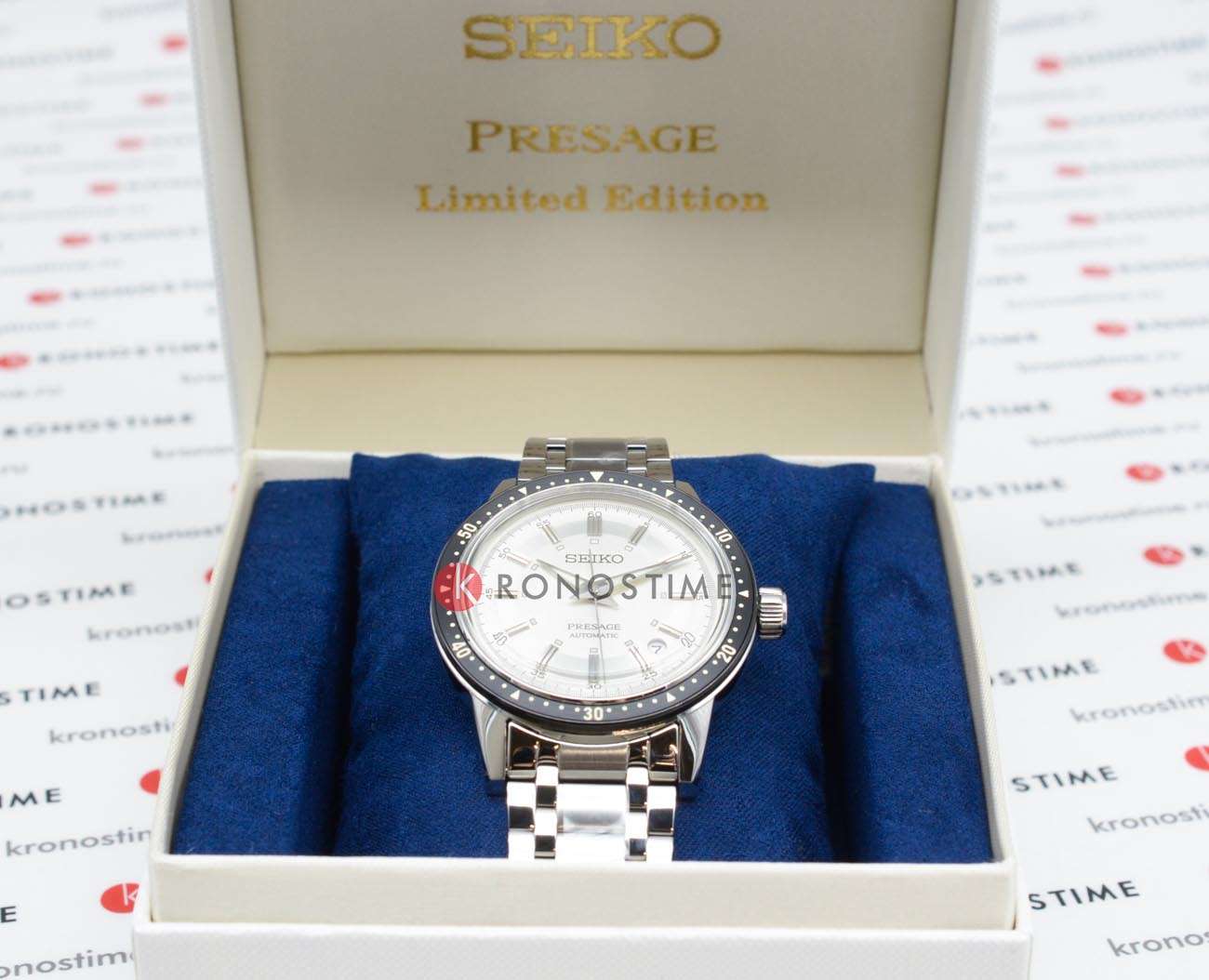 Мужские наручные часы Seiko SRPK61J1 из коллекции Presage Style 60s сочетают в себе классический дизайн и надежность современных технологий. Модель обладает круглым корпусом, изготовленным из нержавеющей стали, что обеспечивает высокую устойчивость к внешним воздействиям . Браслет также выполнен из нержавеющей стали с раскладной застежкойРаскладной замокДанный вариант застежки используется только на часах с металлическим браслетом. Отличительная особенность такого крепления в том, что длина браслета становится универсальной и вы можете самостоятельно отрегулировать нужный вам размер – застежка просто двигается по браслету часов., гарантирующей комфортное ношение .  БезельБезельВнешний ободок, закрепляющий стекло. В спортивных часах так называется поворотное кольцо с делениями на циферблате, выполняет роль таймера – замеряет отрезки времени на шкале. Неподвижный безель – элемент декора. Однонаправленно вращающийся безель на дайверских часах позволяет фиксировать моменты погружения и выныривания на поверхность. с PVD-покрытиемPVDУльтратонкое покрытие наносится в технике вакуумного напыления, сочетает в себе нитрид титана особой прочности со слоем золота или оксида хрома. Несёт в себе декоративную или защитную функцию.. Циферблат часов украшен текстурой, которая подчеркивает винтажный стиль модели. Для защиты используется минеральное стеклоМинеральное стеклоМинеральное стекло представляет собой искусственно выращенный минерал кварца. Такое стекло отличается особой устойчивостью к повреждениям и царапинам. Уступает по некоторым качествам сапфировому стеклу. Hardlex Crystal, обеспечивающее прочную защиту от царапин . Часы работают на автоматическом механизме с калибром 4R35, который включает возможность ручного завода и обладает запасом хода до 41 часа . Часы также оснащены люминесцентным покрытиемЛюминесцентное покрытиеПозволяет считывать показания времени в темноте. Производители наносят на стрелки, часовые индексы, безель или поверхность циферблата светонакопительный состав, дающий холодное свечение. на стрелках и метках, обеспечивающим отличную видимость в темноте, а также имеет водонепроницаемость WR 50, что позволяет защитить корпус от случайных брызг и кратковременного контакта с водой. Вдохновленные культурой 60-х годов, эти часы демонстрируют уникальный стиль и внимание к деталям.