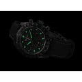 Мужские японские кварцевые часы-хронографХронографФункция позволяет измерять отрезки времени с особой точностью: часы, минуты, секунды. Верным признаком хронографа является наличие на циферблате 3 дополнительных окошек-счётчиков. Seiko Prospex SSC923P1 оснащены сапфировым стекломСапфировое стеклоПрочный и надёжный материал из кристалла сапфира синтетического происхождения, характеризующийся особой твёрдостью и устойчивостью к царапинам и повреждениям., которое гарантирует исключительную прочность и устойчивость к царапинам. Корпус этих часов выполнен из высококачественной стали с PVD-покрытиемPVDУльтратонкое покрытие наносится в технике вакуумного напыления, сочетает в себе нитрид титана особой прочности со слоем золота или оксида хрома. Несёт в себе декоративную или защитную функцию., что придает им дополнительную защиту и изысканный внешний вид. На циферблате расположено окошко даты между 4 и 5 часами, обеспечивая удобство контроля времени. БезельБезельВнешний ободок, закрепляющий стекло. В спортивных часах так называется поворотное кольцо с делениями на циферблате, выполняет роль таймера – замеряет отрезки времени на шкале. Неподвижный безель – элемент декора. Однонаправленно вращающийся безель на дайверских часах позволяет фиксировать моменты погружения и выныривания на поверхность. часов украшен шкалой тахиметраТахиметрРазмеченная шкала, располагается на ободке или безеле часов. Тахиметр позволяет рассчитать скорость на определённом участке пути, расстояние измеряется в километрах или милях., которая позволяет легко измерять скорость движения. Водонепроницаемость класса 100 метров дает возможность носить эти часы во время плавания, занятий водными видами спорта и других активностей, связанных с водой. Стрелки и метки часов покрыты люминесцентным составомЛюминесцентное покрытиеПозволяет считывать показания времени в темноте. Производители наносят на стрелки, часовые индексы, безель или поверхность циферблата светонакопительный состав, дающий холодное свечение., благодаря чему они остаются хорошо видимыми даже в темноте. Ремешок выполнен из прочного нейлона на кожаной основе и оснащен стандартной застежкой, обеспечивающей комфорт и надежность в использовании.