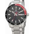 Мужские кварцевые часы Sergio Tacchini из коллекции Archivio — это стильный аксессуар в повседневном стиле. Корпус диаметром 45 мм выполнен из нержавеющей стали 316L. Циферблат чёрного цвета оформлен индексами и стрелками. Указатели дня недели и даты вынесены на отдельные субциферблаты. Стрелки с люминесцентным покрытиемЛюминесцентное покрытиеПозволяет считывать показания времени в темноте. Производители наносят на стрелки, часовые индексы, безель или поверхность циферблата светонакопительный состав, дающий холодное свечение., обеспечивающим хорошую читаемость в темноте. Циферблат защищён минеральным стекломМинеральное стеклоМинеральное стекло представляет собой искусственно выращенный минерал кварца. Такое стекло отличается особой устойчивостью к повреждениям и царапинам. Уступает по некоторым качествам сапфировому стеклу.. Часы оснащены стальным браслетом серебристого цвета с раскладной застёжкойРаскладная застёжкаТакой тип застёжки используется только на браслетах из металла. Она никогда не раскрывается полностью, происходит разделение на 2 и более частей. Раскладывающая застёжка снизит вероятность потери часов к минимуму.. Водонепроницаемость 50 м позволяет использовать часы в повседневных условиях. Надёжный выбор для тех, кто ценит качество и современный дизайн.