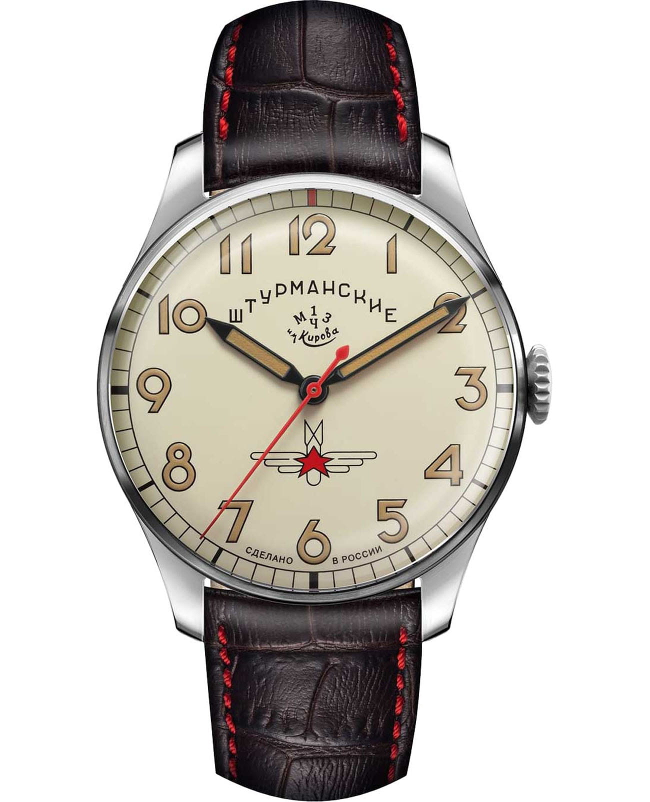 Штурманские мужские российские механические часы 2609-3745477 с механизмом высокой точности. Класс водозащиты: 50 метров, позволит защитить корпус от случайных брызг или капель дождя. Корпус часов изготовлен из стали. Минеральное стеклоМинеральное стеклоМинеральное стекло представляет собой искусственно выращенный минерал кварца. Такое стекло отличается особой устойчивостью к повреждениям и царапинам. Уступает по некоторым качествам сапфировому стеклу. устойчивое к мелким механическим повреждениям.Кожаный ремешок на стандартной застёжке. Стрелки и метки с люминесцентным покрытиемЛюминесцентное покрытиеПозволяет считывать показания времени в темноте. Производители наносят на стрелки, часовые индексы, безель или поверхность циферблата светонакопительный состав, дающий холодное свечение.. Задняя крышка украшена портретом Юрия Гагарина и крепится на 4-х винтах.