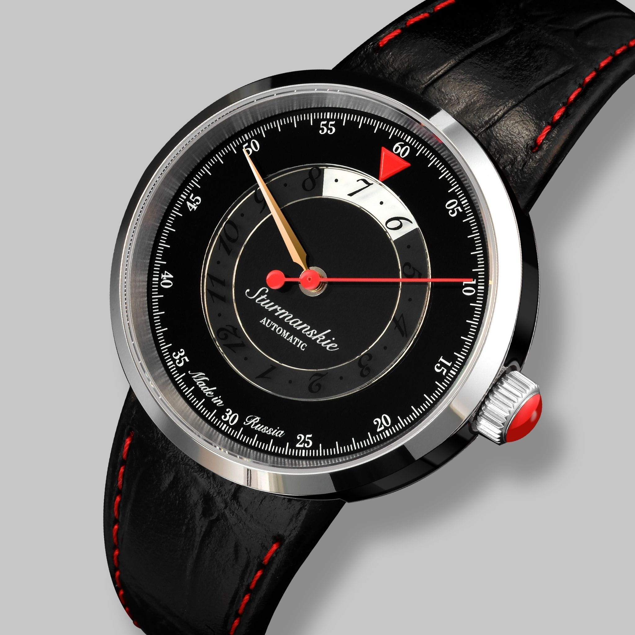 Лимитированные мужские российские механические часы Штурманские Mars Lady 9015/1871777, механический механизм (автоматический калибр) с высокой точностью. Сапфировое стеклоСапфировое стеклоПрочный и надёжный материал из кристалла сапфира синтетического происхождения, характеризующийся особой твёрдостью и устойчивостью к царапинам и повреждениям. устойчивое к появлению царапин, обладающее высокой прозрачностью. Класс водозащиты: 50 метров, позволит защитить корпус от случайных брызг или капель дождя. Корпус часов изготовлен из стали. Кожаный ремешок на стандартной застёжке. Стрелки и метки с люминесцентным покрытиемЛюминесцентное покрытиеПозволяет считывать показания времени в темноте. Производители наносят на стрелки, часовые индексы, безель или поверхность циферблата светонакопительный состав, дающий холодное свечение..