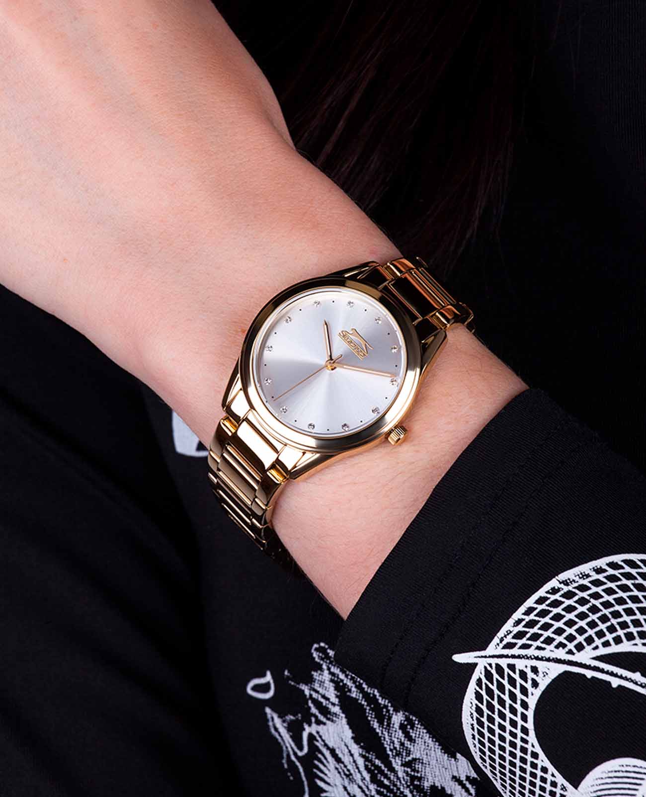 Женские наручные часы Slazenger SL.09.2013.3.03  сочетают в себе элегантность и практичность, представлены в классическом дизайне с круглым корпусом диаметром 35 мм, изготовленным из нержавеющей стали с IP-покрытиемIP-покрытиеМетод ионного напыления. Демонстрирует повышенную устойчивость к истиранию, окислению и химическим веществам. Под воздействием высокого давления и температуры около 1500°C молекулы металла надёжно соединяются с частицами корпуса часов., что обеспечивает привлекательный внешний вид и устойчивость к воздействиям окружающей среды. Циферблат серебристого цвета украшен кристаллами, добавляя модели особую роскошь и шарм. Для защиты циферблата используется минеральное стеклоМинеральное стеклоМинеральное стекло представляет собой искусственно выращенный минерал кварца. Такое стекло отличается особой устойчивостью к повреждениям и царапинам. Уступает по некоторым качествам сапфировому стеклу., обеспечивающее надежную защиту от царапин. Часы комплектуются металлическим браслетом с раскладной застежкойРаскладной замокДанный вариант застежки используется только на часах с металлическим браслетом. Отличительная особенность такого крепления в том, что длина браслета становится универсальной и вы можете самостоятельно отрегулировать нужный вам размер – застежка просто двигается по браслету часов., гарантирующей комфортное ношение. Модель работает на кварцевом механизме, что обеспечивает высокую точность хода времени. Водонепроницаемость часов составляет 3 атмосферы (30 метров), подходящую для ежедневного использования, но не рекомендуется для плавания или дайвинга.