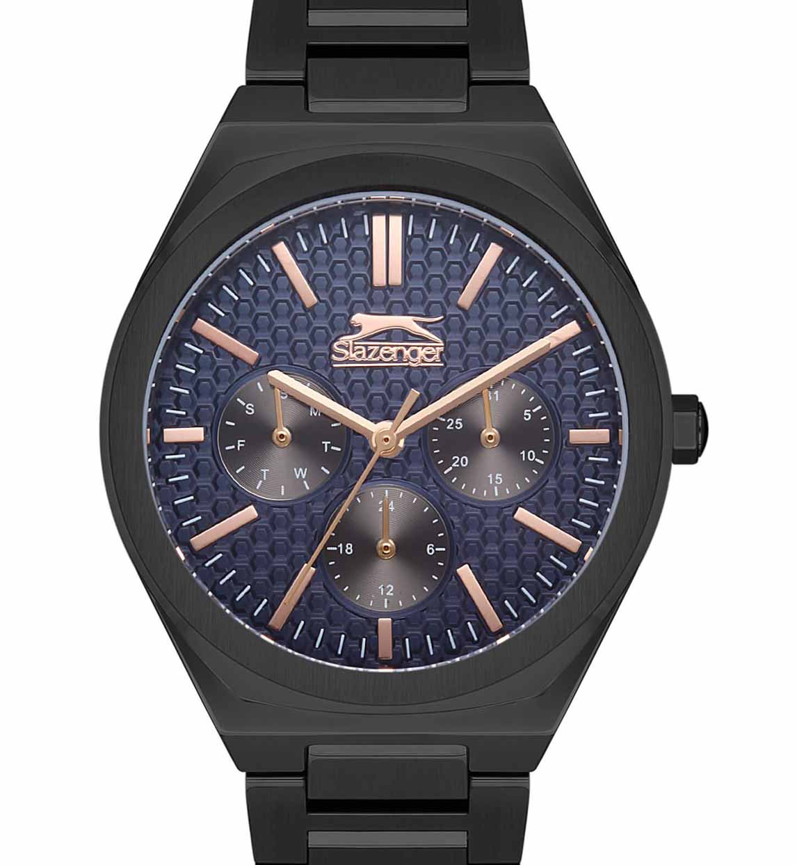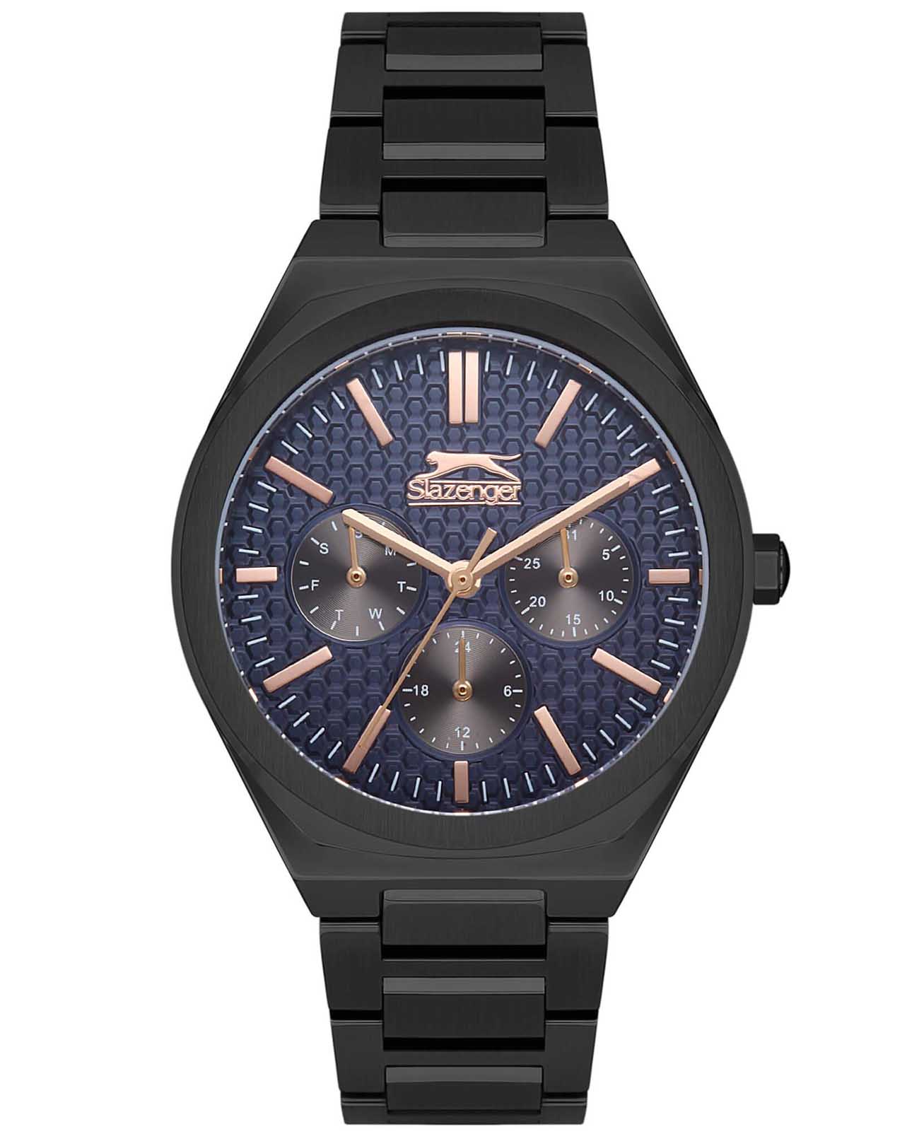 Элегантные женские часы Slazenger SL.09.2138.4.03 воплощают в себе утонченный стиль и функциональность. Их изящный круглый корпус из суперметалла с черным IP-покрытиемIP-покрытиеМетод ионного напыления. Демонстрирует повышенную устойчивость к истиранию, окислению и химическим веществам. Под воздействием высокого давления и температуры около 1500°C молекулы металла надёжно соединяются с частицами корпуса часов. гармонично сочетается с изысканным синим циферблатом и золотистыми стрелками, создавая неповторимый образ. Минималистичный дизайн подчеркивает чистоту линий и внимание к деталям. Циферблат защищен минеральным стекломМинеральное стеклоМинеральное стекло представляет собой искусственно выращенный минерал кварца. Такое стекло отличается особой устойчивостью к повреждениям и царапинам. Уступает по некоторым качествам сапфировому стеклу., устойчивым к царапинам. Часы имеют надежный кварцевый механизм, обеспечивающий точность хода. Часы оснащены  24-часовым указателем времени, а также дней недели и даты - на дополнительных малых циферблатах. Черный браслет из суперметалла IP-покрытиемIP-покрытиеМетод ионного напыления. Демонстрирует повышенную устойчивость к истиранию, окислению и химическим веществам. Под воздействием высокого давления и температуры около 1500°C молекулы металла надёжно соединяются с частицами корпуса часов. идеально облегает запястье. Модель прекрасно дополнит как деловой, так и повседневный образ, став незаменимым аксессуаром для современной женщины, ценящей качество и стиль.