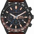 Slazenger SL.09.2152.2.04 – это великолепное сочетание стиля и функциональности, созданное для тех, кто ценит элегантность и надежность. Эти наручные часы работают на кварцевом механизме, обеспечивая точность и долговечность. Корпус выполнен из прочного суперметалла с черным IP-покрытиемIP-покрытиеМетод ионного напыления. Демонстрирует повышенную устойчивость к истиранию, окислению и химическим веществам. Под воздействием высокого давления и температуры около 1500°C молекулы металла надёжно соединяются с частицами корпуса часов., а безельБезельВнешний ободок, закрепляющий стекло. В спортивных часах так называется поворотное кольцо с делениями на циферблате, выполняет роль таймера – замеряет отрезки времени на шкале. Неподвижный безель – элемент декора. Однонаправленно вращающийся безель на дайверских часах позволяет фиксировать моменты погружения и выныривания на поверхность. с черным и коричневым IP-покрытиемIP-покрытиеМетод ионного напыления. Демонстрирует повышенную устойчивость к истиранию, окислению и химическим веществам. Под воздействием высокого давления и температуры около 1500°C молекулы металла надёжно соединяются с частицами корпуса часов., что придает часам современный и утонченный вид. Черный циферблат, оформленный в технике Sunray, украшен логотипом бренда и часовыми метками в виде штрихов, что добавляет аксессуару изысканности. Особенностью данной модели является наличие календаря, отображающего дату и день недели, а также возможность следить за временем во втором часовом поясе. Все это удобно размещено на отдельных циферблатах, что делает использование часов максимально комфортным. Рифленая заводная головка снабжена защитой, что обеспечивает дополнительную надежность. Часы также обладают водозащитой на уровне 50WR, что позволяет им выдерживать воздействие воды в повседневных ситуациях. Минеральное стеклоМинеральное стеклоМинеральное стекло представляет собой искусственно выращенный минерал кварца. Такое стекло отличается особой устойчивостью к повреждениям и царапинам. Уступает по некоторым качествам сапфировому стеклу. защищает циферблат от царапин и повреждений, сохраняя его внешний вид безупречным. Люминесцентное покрытиеЛюминесцентное покрытиеПозволяет считывать показания времени в темноте. Производители наносят на стрелки, часовые индексы, безель или поверхность циферблата светонакопительный состав, дающий холодное свечение. на стрелках обеспечивает отличную видимость в темноте. Завершающим штрихом образа является кожаный ремешок с классической застежкой, который обеспечивает удобную посадку на запястье и добавляет модели роскошный акцент.