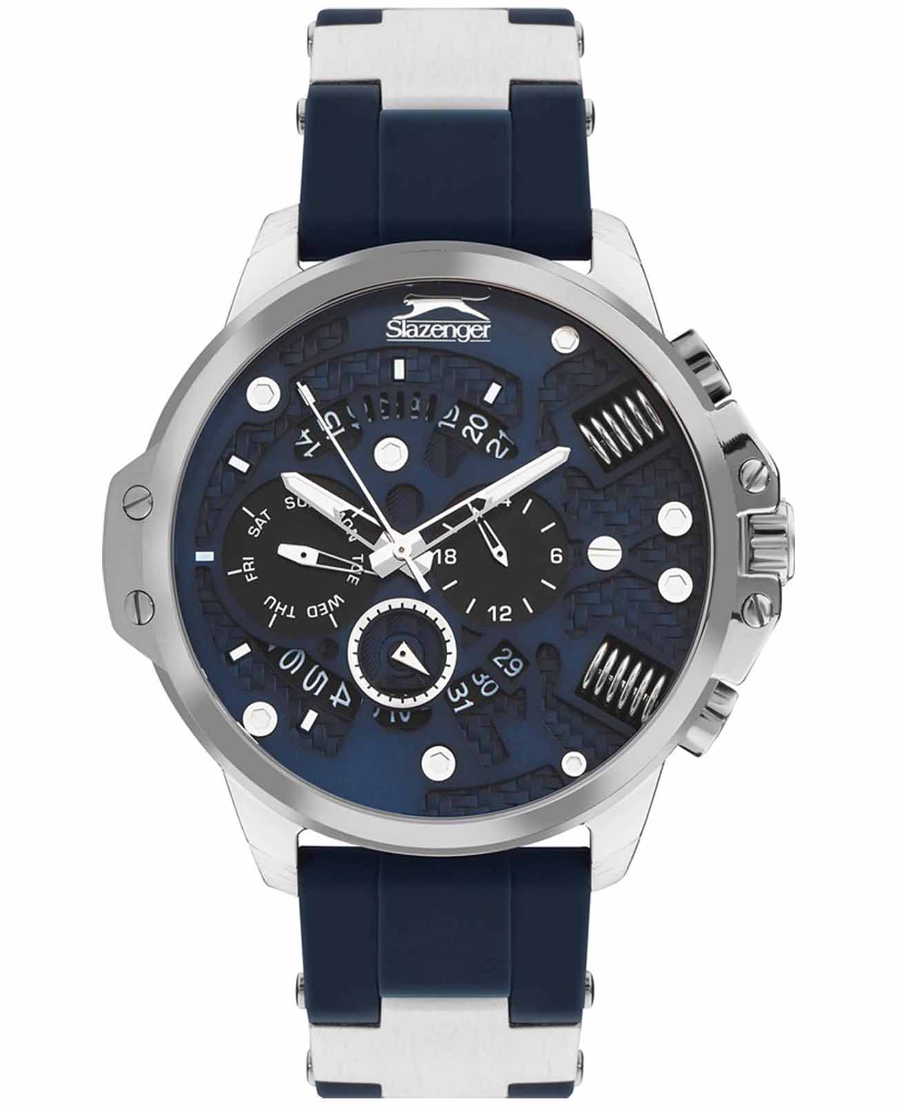 Часы Slazenger SL.09.2212.2.05 представляют собой стильный и функциональный аксессуар, созданный для современных мужчин, ценящих качество и надежность. Они оснащены кварцевым механизмом, который обеспечивает точность хода и минимальную необходимость в обслуживании. Люминесцентное покрытиеЛюминесцентное покрытиеПозволяет считывать показания времени в темноте. Производители наносят на стрелки, часовые индексы, безель или поверхность циферблата светонакопительный состав, дающий холодное свечение. на стрелках и метках обеспечивает отличную видимость в темноте. Благодаря водозащите уровня WR 50 (5 ATM), эти часы отлично справляются с воздействием влаги, что делает их подходящими для повседневного ношения и активного образа жизни. Минеральное стеклоМинеральное стеклоМинеральное стекло представляет собой искусственно выращенный минерал кварца. Такое стекло отличается особой устойчивостью к повреждениям и царапинам. Уступает по некоторым качествам сапфировому стеклу. защищает циферблат от царапин и повреждений, гарантируя долгий срок службы. Корпус часов диаметром 47 мм и толщиной 13 мм выполнен из прочного суперметалла, что придаёт им стильный и современный вид. Силиконовый синий браслет, дополненный элементами из суперметалла, обеспечивает комфорт при носке и надёжно фиксирует часы на запястье, а его размеры (22-20 мм) подходят для большинства мужчин. Часы оснащены рядом полезных функций, таких как индикация даты, дня недели и 24-часовой указатель времени, что делает их не только стильным, но и практичным аксессуаром. Вес модели составляет 110 г, что делает их лёгкими и удобными для ежедневного ношения.