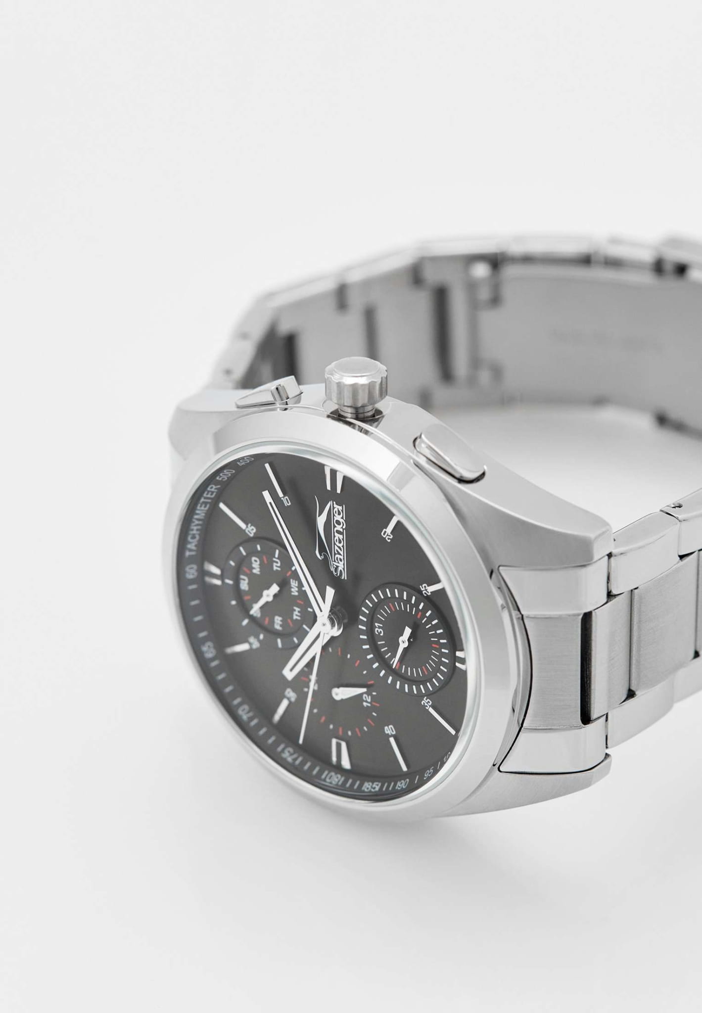 Часы Slazenger SL.09.2215.2.02 представляют собой стильные мужские наручные часы, которые сочетают в себе элегантный дизайн и функциональность. Изготовленные в Англии, эти кварцевые часы оснащены прочным металлическим корпусом и металлическим браслетом с раскладной застёжкойРаскладная застёжкаТакой тип застёжки используется только на браслетах из металла. Она никогда не раскрывается полностью, происходит разделение на 2 и более частей. Раскладывающая застёжка снизит вероятность потери часов к минимуму., который обеспечивает надежную фиксацию на запястье. Минеральное стеклоМинеральное стеклоМинеральное стекло представляет собой искусственно выращенный минерал кварца. Такое стекло отличается особой устойчивостью к повреждениям и царапинам. Уступает по некоторым качествам сапфировому стеклу. защищает черный циферблат от царапин, а водозащита WR 50 позволяет использовать их в условиях повышенной влажности. Диаметр корпуса составляет 43 мм, а толщина — 14 мм, что делает часы удобными для ежедневного ношения. Ширина ремешка — 22 мм, что обеспечивает комфорт и стильный вид на руке. Дополнительные функции включают отображение второго часового поясаВторой часовой поясФункция, позволяющая отображать время двух часовых поясов одновременно., дня недели и текущего времени в 24-часовом формате, а также наличие окошка даты для удобства пользователя. Стрелки снабжены люминесцентным покрытиемЛюминесцентное покрытиеПозволяет считывать показания времени в темноте. Производители наносят на стрелки, часовые индексы, безель или поверхность циферблата светонакопительный состав, дающий холодное свечение., что позволяет легко считывать время в темноте. Часы также оснащены тахиметромТахиметрРазмеченная шкала, располагается на ободке или безеле часов. Тахиметр позволяет рассчитать скорость на определённом участке пути, расстояние измеряется в километрах или милях., что добавляет им функциональности и может быть полезно для измерения скорости.