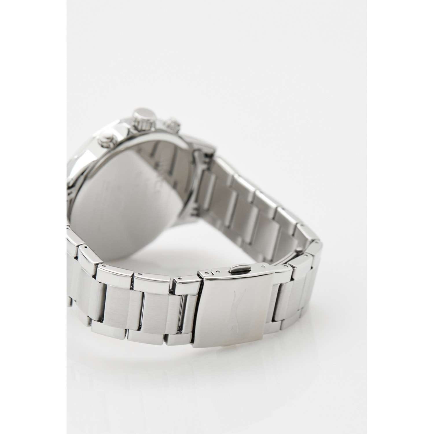 Стильные мужские наручные часы Slazenger SL.09.2216.2.01 станут идеальным аксессуаром для современного мужчины. Этот британский бренд славится своим качеством и надежностью, а данная модель не является исключением. Часы оснащены кварцевым механизмом, что обеспечивает точность хода и долговечность использования. Корпус часов выполнен из металла, а прочное минеральное стеклоМинеральное стеклоМинеральное стекло представляет собой искусственно выращенный минерал кварца. Такое стекло отличается особой устойчивостью к повреждениям и царапинам. Уступает по некоторым качествам сапфировому стеклу. защищает циферблат от царапин и повреждений. Элегантный металлический браслет серебристого цвета снабжен удобной раскладной застёжкойРаскладная застёжкаТакой тип застёжки используется только на браслетах из металла. Она никогда не раскрывается полностью, происходит разделение на 2 и более частей. Раскладывающая застёжка снизит вероятность потери часов к минимуму., что гарантирует комфортное ношение на запястье. Ширина браслета составляет 22 мм, что придает часам солидный вид. Диаметр корпуса равен 45 мм, а толщина 12 мм, что делает эту модель заметной, но в то же время не громоздкой. Водозащита уровня WR 50 позволяет использовать часы в повседневной жизни, не беспокоясь о случайных попаданиях воды. Стрелки снабжены люминесцентным покрытиемЛюминесцентное покрытиеПозволяет считывать показания времени в темноте. Производители наносят на стрелки, часовые индексы, безель или поверхность циферблата светонакопительный состав, дающий холодное свечение., что позволяет легко считывать время в темноте. Функциональные возможности часов включают отображение даты, дня недели и времени в 24-часовом формате на дополнительных малых циферблатах. Это делает модель не только стильной, но и практичной в использовании.