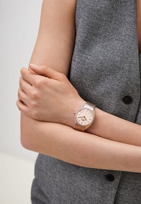 Часы Slazenger SL.09.2261.3.02 — это утонченное сочетание современного дизайна и классической элегантности. Изделие оснащено надежным кварцевым механизмом, который обеспечивает точность хода и простоту эксплуатации. Корпус из суперметалла с розово-золотистым IP-покрытиемIP-покрытиеМетод ионного напыления. Демонстрирует повышенную устойчивость к истиранию, окислению и химическим веществам. Под воздействием высокого давления и температуры около 1500°C молекулы металла надёжно соединяются с частицами корпуса часов. гармонично сочетается с металлическим браслетом аналогичного оттенка и покрытия, подчеркивая изысканность аксессуара и его актуальность в модных тенденциях. Золотистый розовый циферблат украшен изысканным гильоше Clous de Paris и дополнен лаконичными метками в виде штрихов, а также фирменным логотипом бренда. Минеральное стеклоМинеральное стеклоМинеральное стекло представляет собой искусственно выращенный минерал кварца. Такое стекло отличается особой устойчивостью к повреждениям и царапинам. Уступает по некоторым качествам сапфировому стеклу. надежно защищает циферблат от случайных царапин. Диаметр корпуса составляет 34 мм, толщина — 8 мм, ширина браслета — 18 мм, а вес часов — всего 54 г, благодаря чему аксессуар удобно сидит на запястье. Стальной браслет c раскладным замкомРаскладной замокДанный вариант застежки используется только на часах с металлическим браслетом. Отличительная особенность такого крепления в том, что длина браслета становится универсальной и вы можете самостоятельно отрегулировать нужный вам размер – застежка просто двигается по браслету часов. удобно фиксируется на запястье и подчёркивает современный характер часов. Водозащита 30WR позволяет не беспокоиться о случайных брызгах. Модель отличается отсутствием секундной стрелки и оснащена рифленой заводной головкой для легкой корректировки времени. Эти часы станут стильным завершением любого образа, подчеркивая индивидуальность и чувство вкуса обладателя.