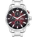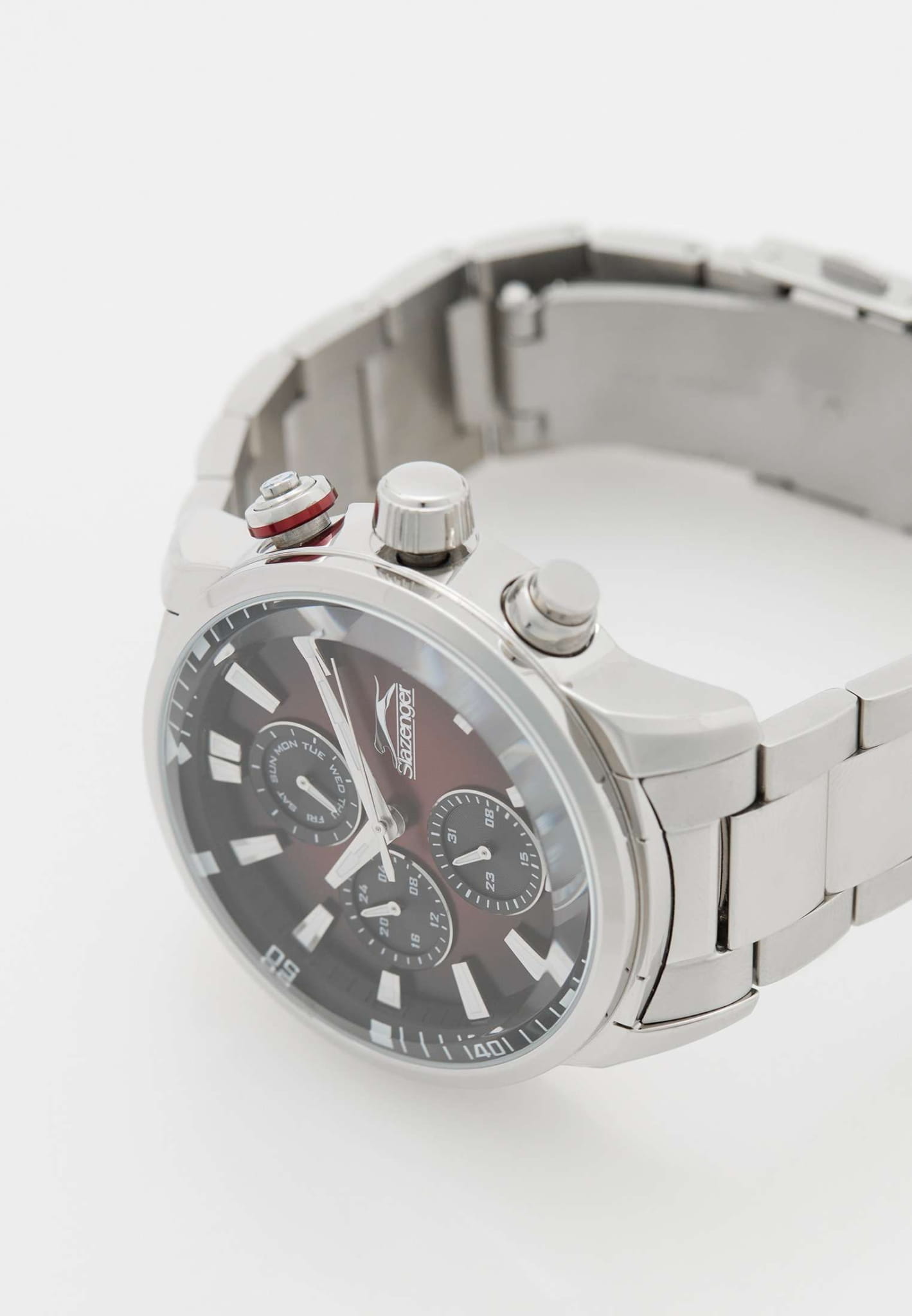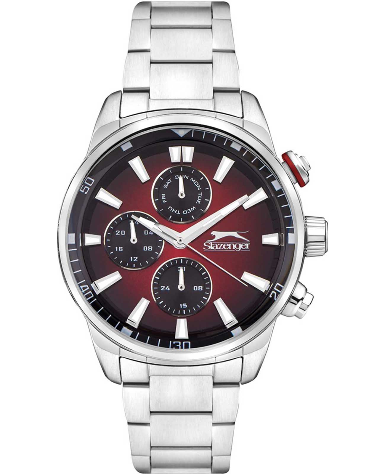 Часы Slazenger SL.09.2272.2.06 – это стильный аксессуар, сочетающий в себе современный дизайн и продуманную функциональность. Модель оснащена точным кварцевым механизмом, который гарантирует стабильную работу и легкость в использовании. Корпус и браслет выполнены из суперметалла — инновационного сплава на основе меди с пониженным содержанием цинка и никеля, обладающего высокой прочностью и устойчивостью к износу благодаря особой технологии покрытия. Элегантный градиентный красно-чёрный циферблат защищён надёжным минеральным стекломМинеральное стеклоМинеральное стекло представляет собой искусственно выращенный минерал кварца. Такое стекло отличается особой устойчивостью к повреждениям и царапинам. Уступает по некоторым качествам сапфировому стеклу., устойчивым к царапинам и повреждениям. На циферблате размещены отдельные индикаторы: 24-часовой указатель времени, а также дополнительные циферблаты для отображения даты и дня недели, что делает модель максимально информативной и удобной в повседневном использовании. Водозащита 5 АТМ (5 бар) надёжно защищает механизм от брызг и дождя, а диаметр корпуса 45 мм и толщина 13 мм обеспечивают солидный внешний вид и комфортную посадку на запястье. Стальной браслет с раскладной застёжкойРаскладная застёжкаТакой тип застёжки используется только на браслетах из металла. Она никогда не раскрывается полностью, происходит разделение на 2 и более частей. Раскладывающая застёжка снизит вероятность потери часов к минимуму. обеспечивает комфортную посадку. Стрелки с люминесцентным покрытиемЛюминесцентное покрытиеПозволяет считывать показания времени в темноте. Производители наносят на стрелки, часовые индексы, безель или поверхность циферблата светонакопительный состав, дающий холодное свечение. удобно подсвечиваются в темноте после зарядки на свету.  Часы подойдут как для ежедневного ношения, так и для особых случаев, а универсальный дизайн подчеркнёт индивидуальность и вкус владельца.