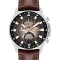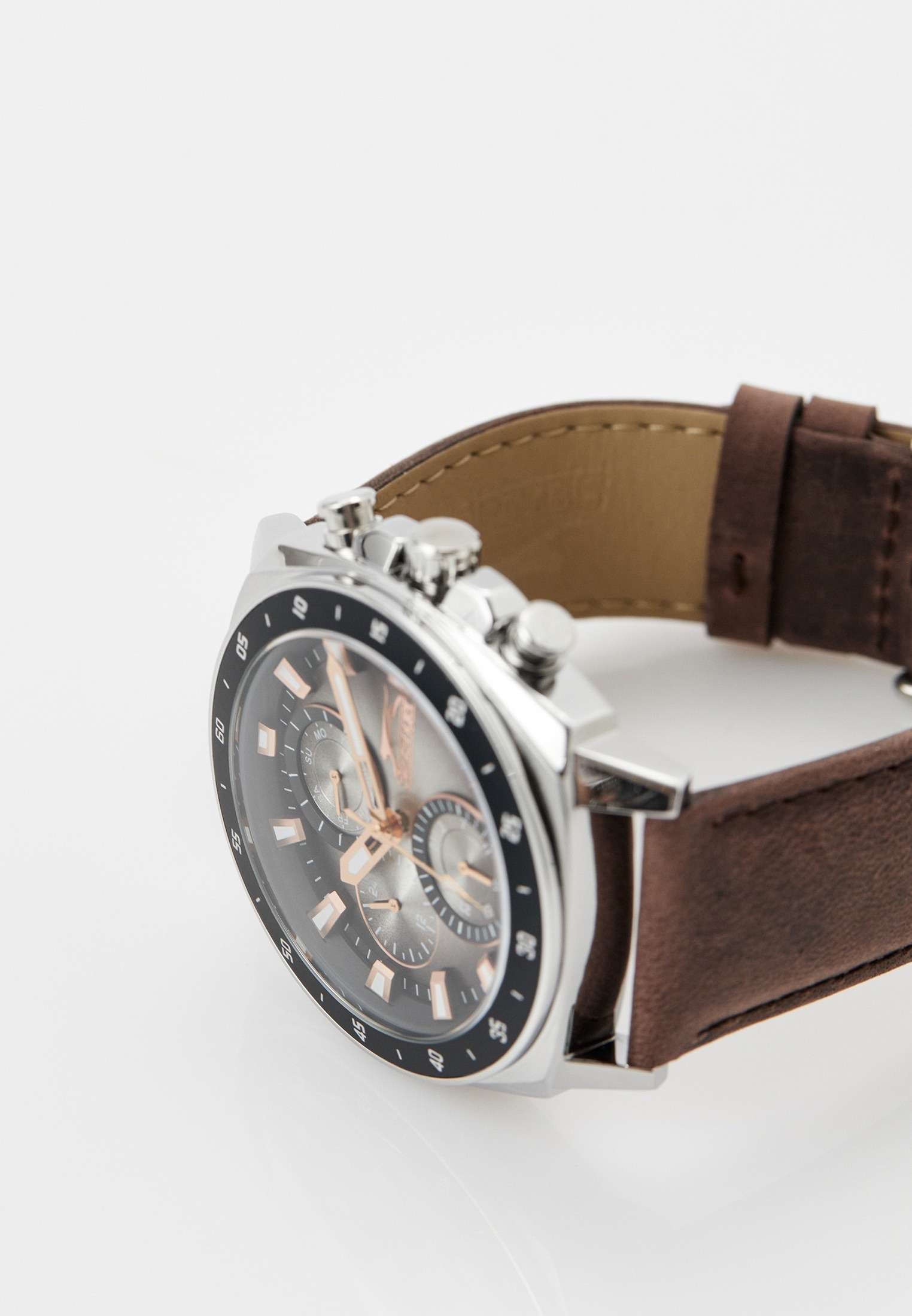 Slazenger SL.09.2293.2.06 — это стильные наручные часы, выполненные в современном дизайне и отлично подходящие для повседневного использования. Корпус диаметром 45 мм изготовлен из прочного металла и дополнен минеральным стекломМинеральное стеклоМинеральное стекло представляет собой искусственно выращенный минерал кварца. Такое стекло отличается особой устойчивостью к повреждениям и царапинам. Уступает по некоторым качествам сапфировому стеклу., которое защищает градиентный коричневый циферблат. Коричневый кожаный ремешок шириной 24 мм оснащён надежной классической застежкой, которая обеспечивает комфортную посадку на руке. Кварцевый механизм гарантирует точный ход, а водозащита уровня WR 50 позволяет не снимать часы во время мытья рук или под дождём. Модель оснащена люминесцентным покрытиемЛюминесцентное покрытиеПозволяет считывать показания времени в темноте. Производители наносят на стрелки, часовые индексы, безель или поверхность циферблата светонакопительный состав, дающий холодное свечение. стрелок и меток, что облегчает считывание времени в темноте. Дополнительные малые циферблаты отображают дату, день недели и текущее время в 24-часовом формате. Часы также оснащены заводной головкой с защитой и безелемБезельВнешний ободок, закрепляющий стекло. В спортивных часах так называется поворотное кольцо с делениями на циферблате, выполняет роль таймера – замеряет отрезки времени на шкале. Неподвижный безель – элемент декора. Однонаправленно вращающийся безель на дайверских часах позволяет фиксировать моменты погружения и выныривания на поверхность. с черным IP-покрытиемIP-покрытиеМетод ионного напыления. Демонстрирует повышенную устойчивость к истиранию, окислению и химическим веществам. Под воздействием высокого давления и температуры около 1500°C молекулы металла надёжно соединяются с частицами корпуса часов. и секундной разметкой. Вес изделия составляет 80 грамм.