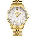 Женские кварцевые часы Slazenger SL.09.2373.3.05 – это сочетание элегантности, современного стиля и надёжности. Изящный корпус из суперметалла с IP-покрытиемIP-покрытиеМетод ионного напыления. Демонстрирует повышенную устойчивость к истиранию, окислению и химическим веществам. Под воздействием высокого давления и температуры около 1500°C молекулы металла надёжно соединяются с частицами корпуса часов. золотистого цвета, диаметром 34 мм и толщиной 9 мм, подчёркивает утончённость модели и делает их идеальным аксессуаром для любой ситуации – будь то деловая встреча, романтический вечер или повседневные выходы. Циферблат надёжно защищён минеральным стекломМинеральное стеклоМинеральное стекло представляет собой искусственно выращенный минерал кварца. Такое стекло отличается особой устойчивостью к повреждениям и царапинам. Уступает по некоторым качествам сапфировому стеклу., которое устойчиво к механическим повреждениям и сохраняет кристальную прозрачность. Браслет из суперметалла с IP-покрытиемIP-покрытиеМетод ионного напыления. Демонстрирует повышенную устойчивость к истиранию, окислению и химическим веществам. Под воздействием высокого давления и температуры около 1500°C молекулы металла надёжно соединяются с частицами корпуса часов. удобно облегает запястье и фиксируется с помощью раскладной застёжкиРаскладная застёжкаТакой тип застёжки используется только на браслетах из металла. Она никогда не раскрывается полностью, происходит разделение на 2 и более частей. Раскладывающая застёжка снизит вероятность потери часов к минимуму., обеспечивая надёжность и комфорт в повседневном ношении. Утончённый стиль, внимание к деталям и практичность делают эту модель идеальным выбором для современных женщин, ценящих эстетику и функциональность. Водозащита до 30 метров позволит защитить корпус от случайных брызг или капель дождя.