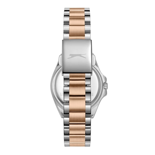 Женские кварцевые часы Slazenger — это элегантный аксессуар. Корпус диаметром 33 мм и толщиной 9 мм выполнен из суперметалла. Безель с IP-покрытиемIP-покрытиеМетод ионного напыления. Демонстрирует повышенную устойчивость к истиранию, окислению и химическим веществам. Под воздействием высокого давления и температуры около 1500°C молекулы металла надёжно соединяются с частицами корпуса часов.. Циферблат зелёного цвета оформлен индексами и стрелками. Циферблат защищён минеральным стекломМинеральное стеклоМинеральное стекло представляет собой искусственно выращенный минерал кварца. Такое стекло отличается особой устойчивостью к повреждениям и царапинам. Уступает по некоторым качествам сапфировому стеклу.. Механизм — кварцевый. Стрелки и метки с люминесцентным покрытиемЛюминесцентное покрытиеПозволяет считывать показания времени в темноте. Производители наносят на стрелки, часовые индексы, безель или поверхность циферблата светонакопительный состав, дающий холодное свечение., обеспечивающим хорошую читаемость в темноте. Часы оснащены браслетом из суперметалла с IP-покрытиемIP-покрытиеМетод ионного напыления. Демонстрирует повышенную устойчивость к истиранию, окислению и химическим веществам. Под воздействием высокого давления и температуры около 1500°C молекулы металла надёжно соединяются с частицами корпуса часов. и раскладной застёжкойРаскладная застёжкаТакой тип застёжки используется только на браслетах из металла. Она никогда не раскрывается полностью, происходит разделение на 2 и более частей. Раскладывающая застёжка снизит вероятность потери часов к минимуму.. Водонепроницаемость 50 м позволяет использовать часы в повседневных условиях. Гарантия — 12 месяцев. Идеальный выбор для тех, кто ценит стиль и качество.