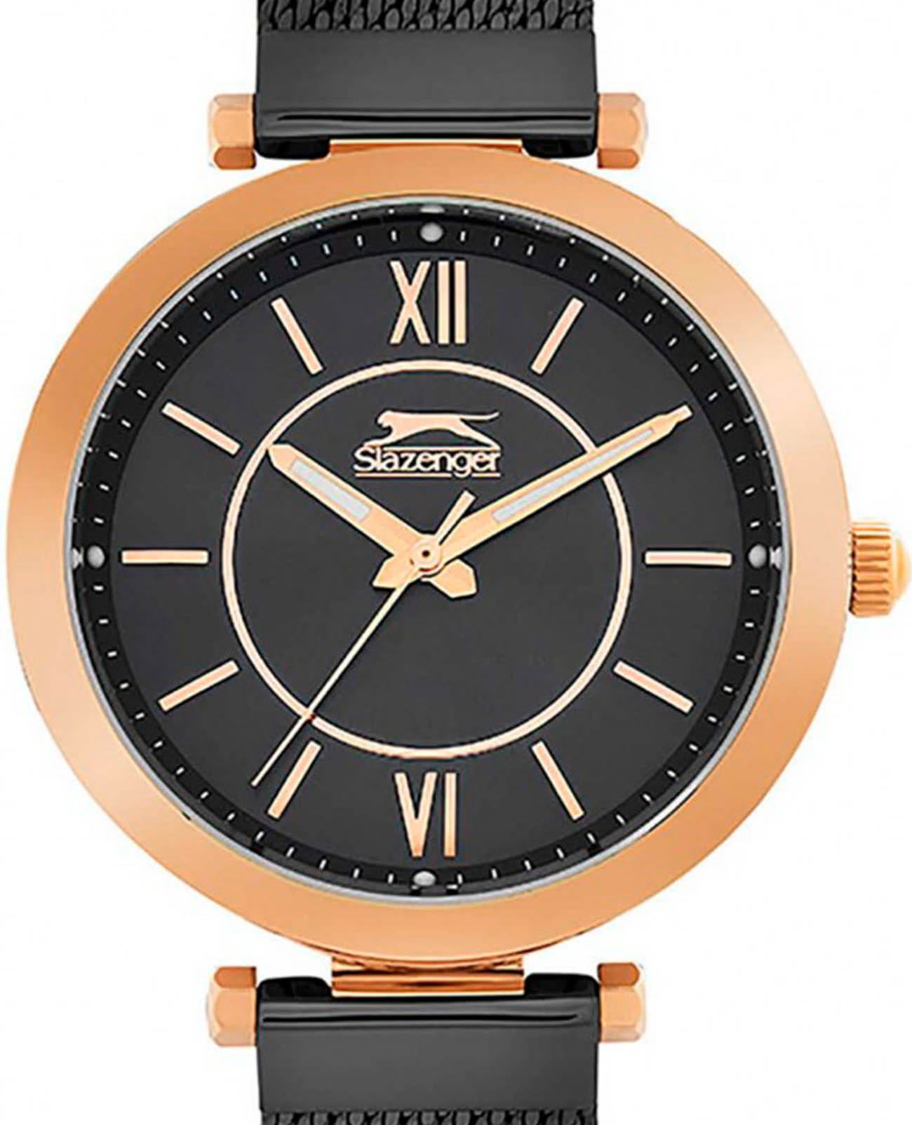 Женские кварцевые часы Slazenger — это элегантный аксессуар, который станет отличным дополнением к стилю. Корпус диаметром 34 мм и толщиной 8 мм выполнен из суперметалла с IP-покрытиемIP-покрытиеМетод ионного напыления. Демонстрирует повышенную устойчивость к истиранию, окислению и химическим веществам. Под воздействием высокого давления и температуры около 1500°C молекулы металла надёжно соединяются с частицами корпуса часов.. Циферблат чёрного цвета оформлен индексами и стрелками. Циферблат защищён минеральным стекломМинеральное стеклоМинеральное стекло представляет собой искусственно выращенный минерал кварца. Такое стекло отличается особой устойчивостью к повреждениям и царапинам. Уступает по некоторым качествам сапфировому стеклу.. Механизм — кварцевый калибр Miyota 2035. Часы оснащены браслетом из суперметалла миланского плетения с раскладной застёжкойРаскладная застёжкаТакой тип застёжки используется только на браслетах из металла. Она никогда не раскрывается полностью, происходит разделение на 2 и более частей. Раскладывающая застёжка снизит вероятность потери часов к минимуму.. Водонепроницаемость 30 м позволяет использовать часы в повседневных условиях. Идеальный выбор для тех, кто ценит стиль и качество.
