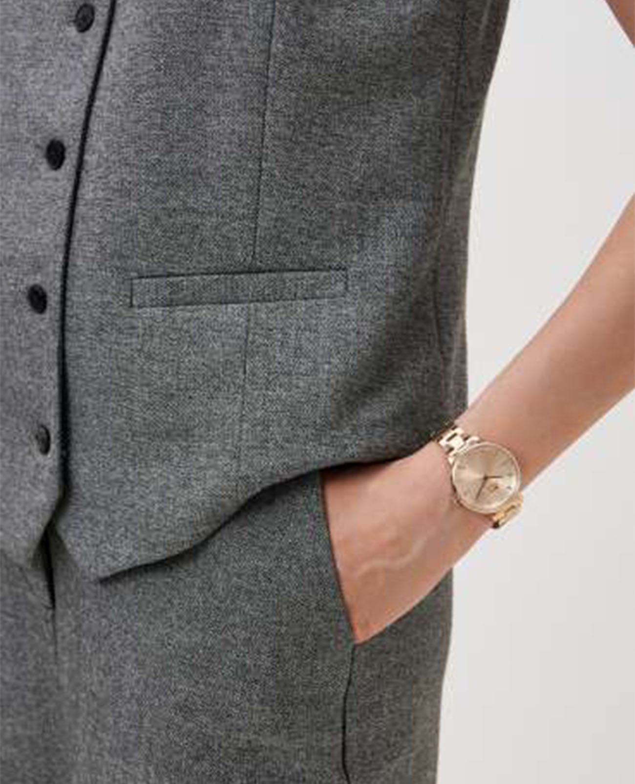 Женские кварцевые часы Slazenger — элегантный аксессуар с гармоничным дизайном и продуманной конструкцией. Корпус диаметром 35 мм и толщиной 8,5 мм выполнен из суперметалла с IP-покрытиемIP-покрытиеМетод ионного напыления. Демонстрирует повышенную устойчивость к истиранию, окислению и химическим веществам. Под воздействием высокого давления и температуры около 1500°C молекулы металла надёжно соединяются с частицами корпуса часов.. Циферблат цвета шампань оформлен индексами и стрелками. Циферблат защищён минеральным стекломМинеральное стеклоМинеральное стекло представляет собой искусственно выращенный минерал кварца. Такое стекло отличается особой устойчивостью к повреждениям и царапинам. Уступает по некоторым качествам сапфировому стеклу.. Механизм — кварцевый калибр Miyota 2035. Браслет интегрирован в корпус, обеспечивая цельный и утончённый образ. Часы оснащены раскладной застёжкойРаскладная застёжкаТакой тип застёжки используется только на браслетах из металла. Она никогда не раскрывается полностью, происходит разделение на 2 и более частей. Раскладывающая застёжка снизит вероятность потери часов к минимуму.. Водонепроницаемость 30 м позволяет использовать часы в повседневных условиях. Стильное решение для тех, кто ценит лаконичность и качество.