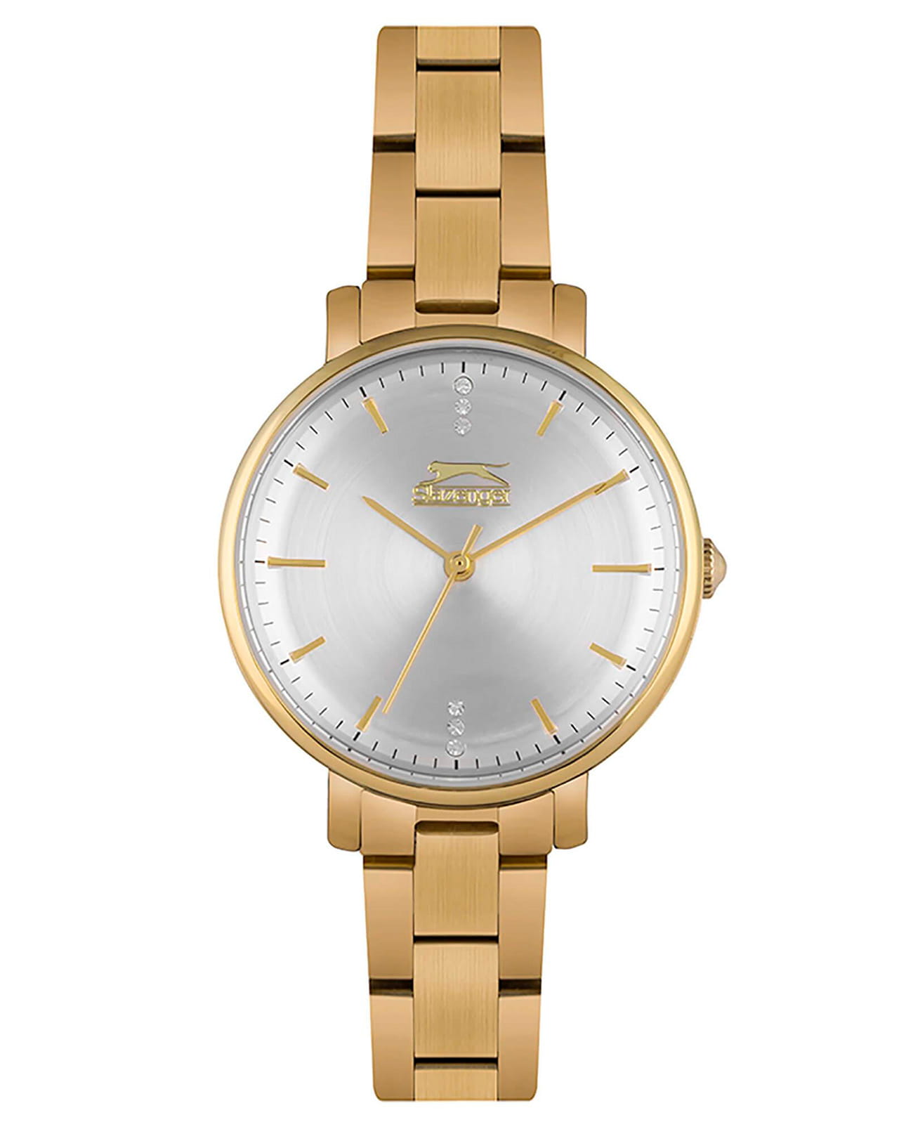 Женские кварцевые часы Slazenger — элегантный аксессуар с гармоничным дизайном и продуманной конструкцией. Корпус диаметром 35 мм и толщиной 8,5 мм выполнен из суперметалла с IP-покрытиемIP-покрытиеМетод ионного напыления. Демонстрирует повышенную устойчивость к истиранию, окислению и химическим веществам. Под воздействием высокого давления и температуры около 1500°C молекулы металла надёжно соединяются с частицами корпуса часов.. Циферблат серебристого цвета оформлен индексами и стрелками. Циферблат защищён минеральным стекломМинеральное стеклоМинеральное стекло представляет собой искусственно выращенный минерал кварца. Такое стекло отличается особой устойчивостью к повреждениям и царапинам. Уступает по некоторым качествам сапфировому стеклу.. Механизм — кварцевый калибр Miyota 2035. Браслет интегрирован в корпус, обеспечивая цельный и утончённый образ. Часы оснащены раскладной застёжкойРаскладная застёжкаТакой тип застёжки используется только на браслетах из металла. Она никогда не раскрывается полностью, происходит разделение на 2 и более частей. Раскладывающая застёжка снизит вероятность потери часов к минимуму.. Водонепроницаемость 30 м позволяет использовать часы в повседневных условиях. Стильное решение для тех, кто ценит лаконичность и качество.