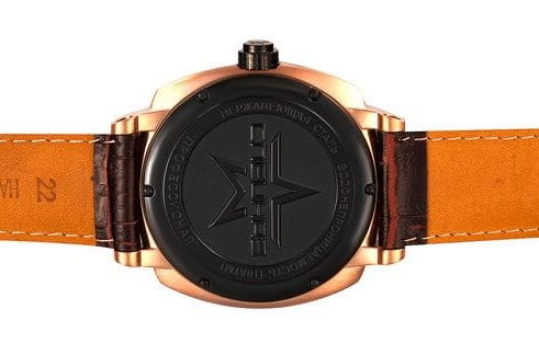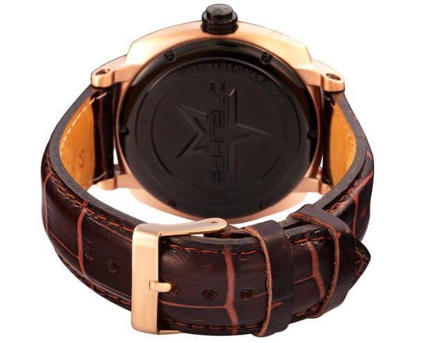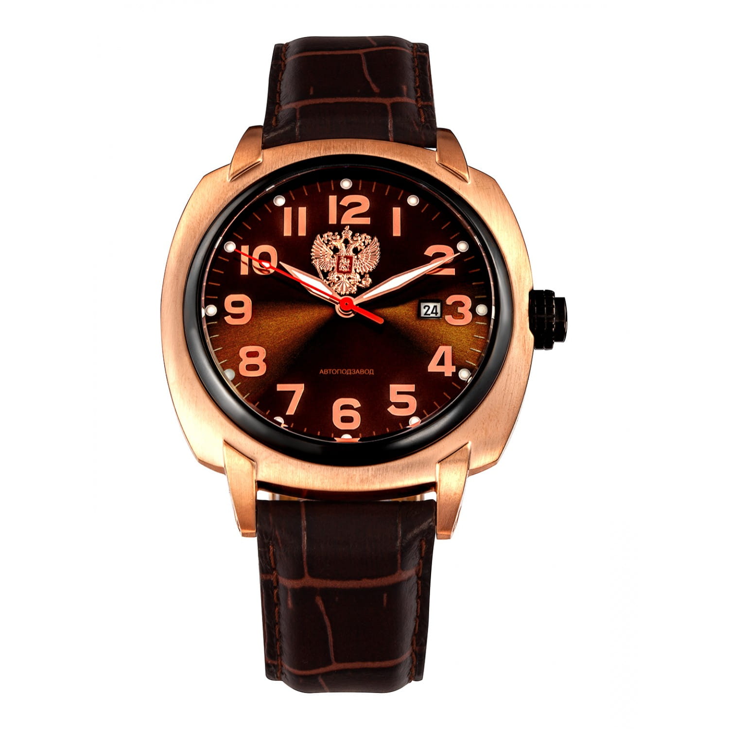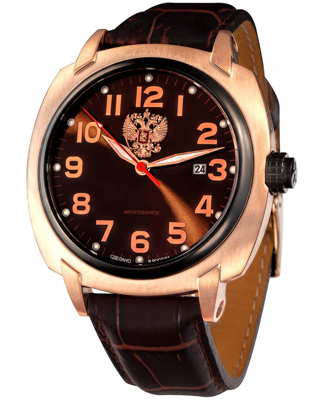 Часы Спецназ "Профессионал" С9063372-8215 сочетают в себе надёжность и функциональность, характерные для профессиональных моделей. Корпус диаметром 46 мм выполнен из нержавеющей стали с PVD-покрытиемPVDУльтратонкое покрытие наносится в технике вакуумного напыления, сочетает в себе нитрид титана особой прочности со слоем золота или оксида хрома. Несёт в себе декоративную или защитную функцию., а коричневый циферблат защищён минеральным стекломМинеральное стеклоМинеральное стекло представляет собой искусственно выращенный минерал кварца. Такое стекло отличается особой устойчивостью к повреждениям и царапинам. Уступает по некоторым качествам сапфировому стеклу..
