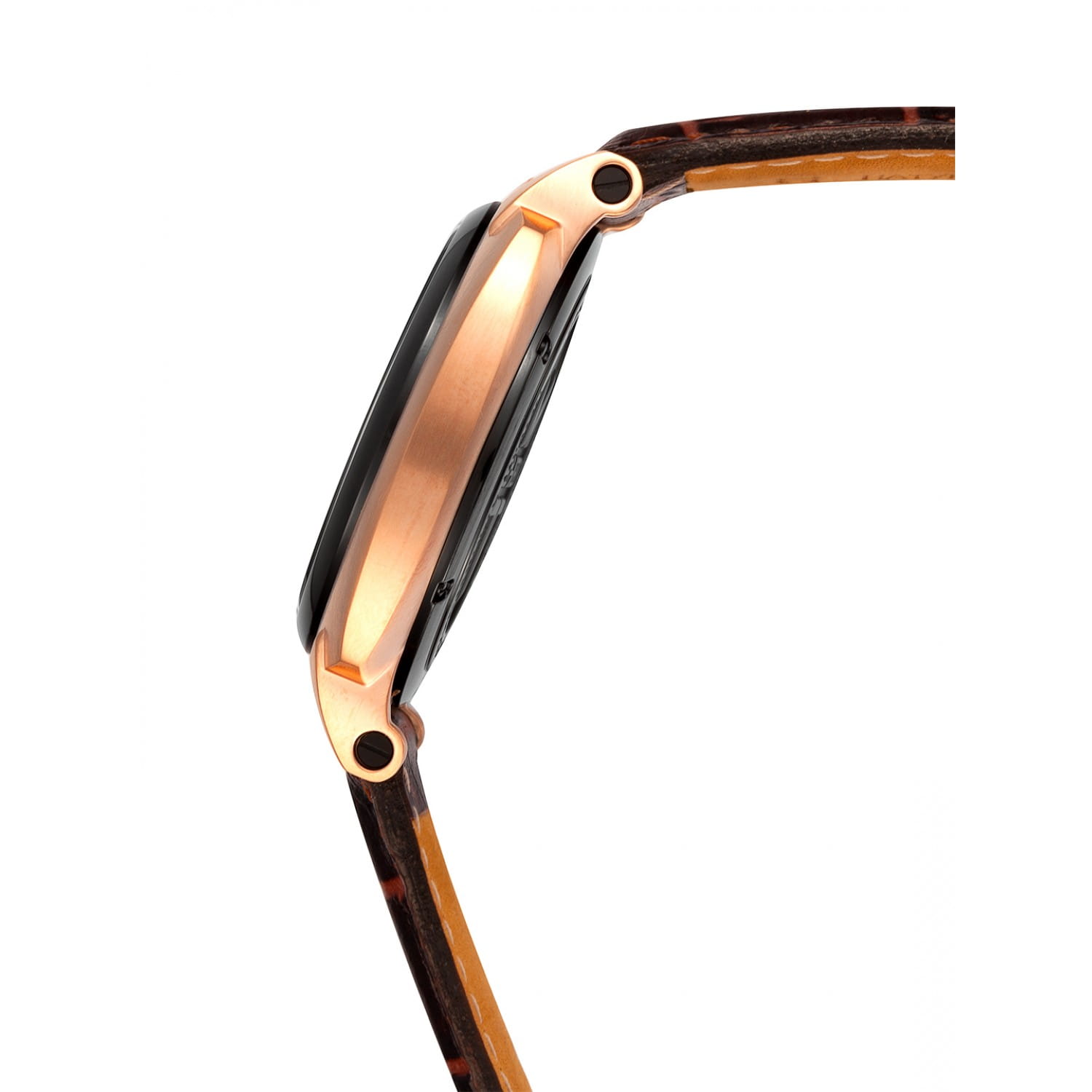 Внутри установлен японский механический механизм Miyota 8215 с автоподзаводом, обеспечивающий высокую точность хода. Запас хода составляет около 40 часов. На циферблате отображается текущее число месяца.