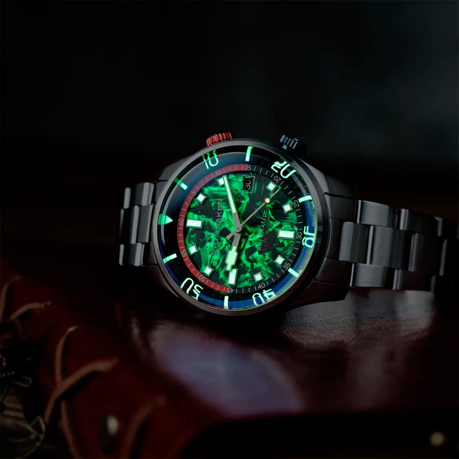 Мужские итальянские часы Spinnaker Bradner SP-5111-11 из лимитированной серии (600 экземпляров). Механический механизм с высокой точностью. Циферблат с люминесцентным покрытиемЛюминесцентное покрытиеПозволяет считывать показания времени в темноте. Производители наносят на стрелки, часовые индексы, безель или поверхность циферблата светонакопительный состав, дающий холодное свечение. стрелок, меток и поворотный безельБезельВнешний ободок, закрепляющий стекло. В спортивных часах так называется поворотное кольцо с делениями на циферблате, выполняет роль таймера – замеряет отрезки времени на шкале. Неподвижный безель – элемент декора. Однонаправленно вращающийся безель на дайверских часах позволяет фиксировать моменты погружения и выныривания на поверхность. дополнен сапфировым стекломСапфировое стеклоПрочный и надёжный материал из кристалла сапфира синтетического происхождения, характеризующийся особой твёрдостью и устойчивостью к царапинам и повреждениям. с антибликовым покрытиемАнтибликовое покрытиеСлой оксида металла в 0,13-0,3 микрон, благодаря которому стекло часов не бликует и не отражает свет. Антибликовое покрытие уменьшает отражение света в 10 раз, обеспечивая отличную читаемость показателей циферблата., устойчивым к появлению царапин и обладающее высокой прозрачностью. Класс водозащиты: 300 метров, позволит плавать, нырять и заниматься другими водными видами спорта. Корпус часов изготовлен из стали. Браслет выполнен из нержавеющей стали.Ширина браслета 20 мм.