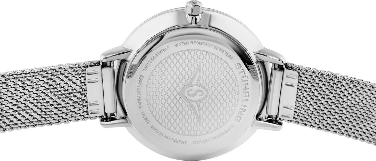Stuhrling 3946.1 — элегантные женские часы, объединяющие строгую классику и современную функциональность. Корпус из нержавеющей стали создают ощущение монолитной надёжности, а глубокий циферблат украшенный кристаллом придаёт модели выразительность и характер. Стальной браслет миланского плетения на раскладном замкеРаскладной замокДанный вариант застежки используется только на часах с металлическим браслетом. Отличительная особенность такого крепления в том, что длина браслета становится универсальной и вы можете самостоятельно отрегулировать нужный вам размер – застежка просто двигается по браслету часов.. Прочное стекло KrysternaKrysternaKrysterna — инновационное стекло для наручных часов. Благодаря уникальной структуре, Krysterna объединяет ключевые преимущества двух материалов: твердость сапфира, защищающую от царапин, и гибкость минерального стекла, обеспечивающую устойчивость к деформациям. Такая комбинация делает его идеальным решением для часов, подверженных экстремальным нагрузкам, сохраняя при этом оптическую прозрачность. защищает циферблат от царапин, а надёжный кварцевый механизм гарантирует стабильную точность. Stuhrling — выбор уверенной девушки, ценящей сочетание функциональности, лаконичного дизайна и безупречной отделки.