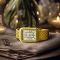 Stuhrling 4061.3 — изысканные женские часы, созданные в духе утончённой элегантности и современного гламура. Прямоугольный корпус с инкрустацией по периметру сияет на свету, подчёркивая благородство глубокого циферблата с утончёнными римскими цифрами и изящными стрелками. Центральная декоративная рамка придаёт модели архитектурную глубину и изысканный блеск. Корпус и браслет выполнены с PVD-покрытиемPVDУльтратонкое покрытие наносится в технике вакуумного напыления, сочетает в себе нитрид титана особой прочности со слоем золота или оксида хрома. Несёт в себе декоративную или защитную функцию. из нержавеющей стали, обеспечивая прочность и долговечность, а надёжная раскладная застёжкаРаскладная застёжкаТакой тип застёжки используется только на браслетах из металла. Она никогда не раскрывается полностью, происходит разделение на 2 и более частей. Раскладывающая застёжка снизит вероятность потери часов к минимуму. гарантирует комфортное и безопасное ношение. Циферблат защищён фирменным стеклом Krysterna, устойчивым к ударам и царапинам. Stuhrling — это гармония блеска, стиля и надёжности, идеально подходящая для женщины, ценящей классическую форму и современное сияние.