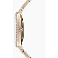 Корпус диаметром 32 мм выполнен из нержавеющей стали с шампань-золотистым PVD-покрытиемPVDУльтратонкое покрытие наносится в технике вакуумного напыления, сочетает в себе нитрид титана особой прочности со слоем золота или оксида хрома. Несёт в себе декоративную или защитную функцию., что обеспечивает долговечность и утончённый внешний вид. БезельБезельВнешний ободок, закрепляющий стекло. В спортивных часах так называется поворотное кольцо с делениями на циферблате, выполняет роль таймера – замеряет отрезки времени на шкале. Неподвижный безель – элемент декора. Однонаправленно вращающийся безель на дайверских часах позволяет фиксировать моменты погружения и выныривания на поверхность. украшен кристаллами Swarovski, добавляющими изысканный блеск. Минеральное стеклоМинеральное стеклоМинеральное стекло представляет собой искусственно выращенный минерал кварца. Такое стекло отличается особой устойчивостью к повреждениям и царапинам. Уступает по некоторым качествам сапфировому стеклу. защищает циферблат от царапин и повреждений.