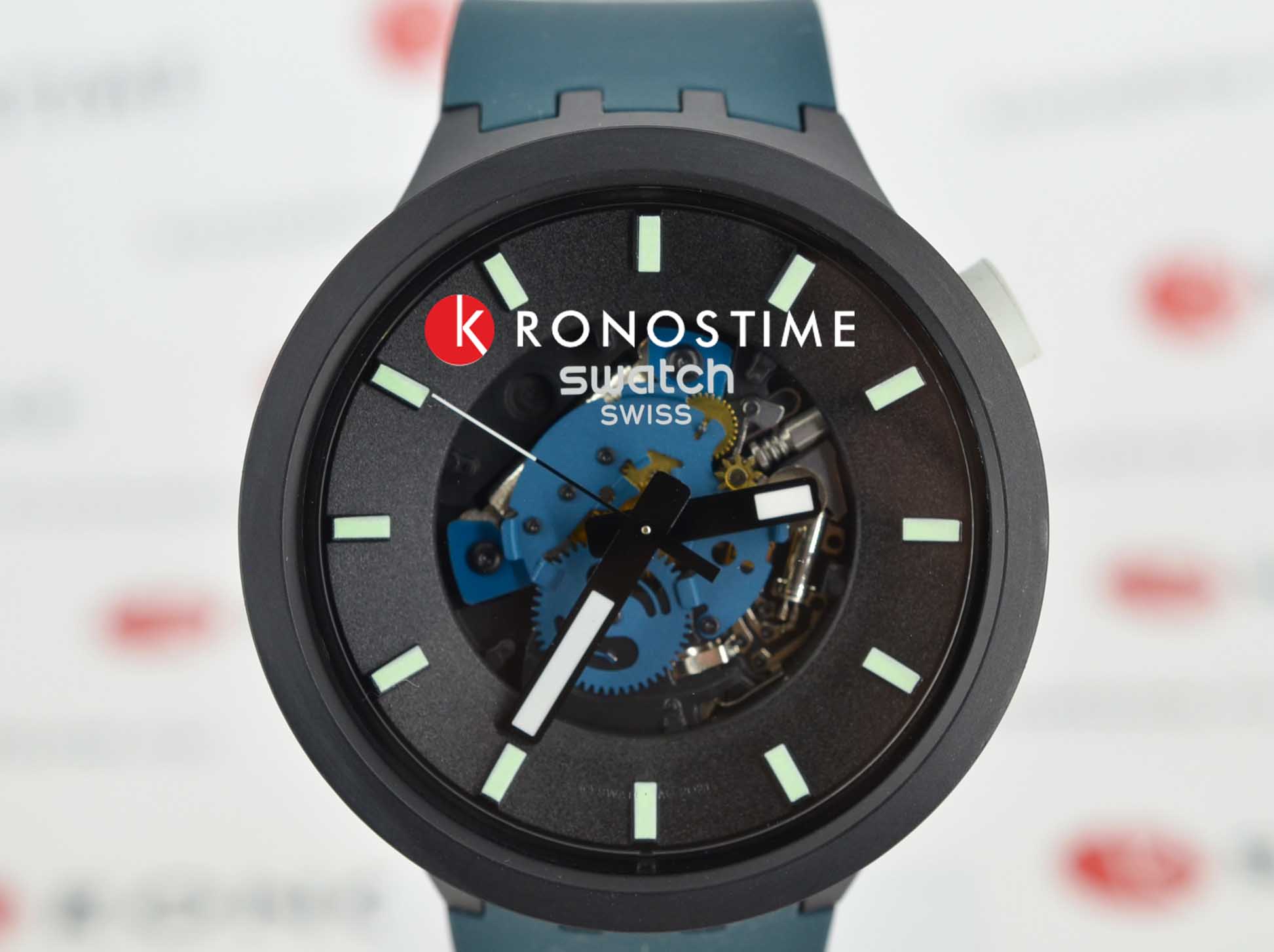 Часы Swatch SB03B111-5300 — это стильный и современный аксессуар для тех, кто ценит лёгкость и комфорт. Часы идеально подойдут как для мужчин, так и для женщин. Центральный элемент этой модели часов — большой корпус со стеклом из био-материала, украшенный 3D-циферблатом с принтами на индексах. Корпус из биокерамикиБиокерамикаБиокерамика — это материал, который на две трети состоит из керамики, на одну треть — из биопластика. Он сочетает в себе лучшие качества обоих материалов и обладает прочностью и шелковистой на ощупь текстурой., а также силиконовые тренчики подчеркивают темно-синий принт на силиконовом ремешке этих огромных часов. На часовую, минутную стрелки нанесено люминесцентное покрытиеЛюминесцентное покрытиеПозволяет считывать показания времени в темноте. Производители наносят на стрелки, часовые индексы, безель или поверхность циферблата светонакопительный состав, дающий холодное свечение., которое светится в темноте, создавая необычное изображение. Эти часы имеют NFC модуль, поэтому это несомненно лучший способ оплачивать покупки. Водозащита 30 метров делает часы практичными для повседневного использования. Эти часы подойдут для повседневного ношения и станут ярким акцентом в вашем наряде.