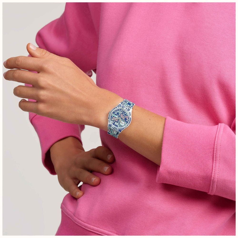 Часы Swatch SO28Z702 — эффектный и надежный аксессуар. Эти веселые часы были созданы в сотрудничестве с уличным художником Бао Хо. Белый циферблат украшен многокрасочным принтом и серебристыми стрелками часов, минут и секунд, все под стеклом из биоматериала. Специальное окно даты и дня месяца также служит индикатором "жизненной силы", который заряжается в течение 7 дней. Матовый белый корпус с темно-синим принтом изготовлен из биоматериала. Матовый белый ремешок с многокрасочным принтом сочетается с матовой темно-синей петлей и пряжкой, также темно-синего цвета. Ремешок из силикона на стандартной застёжке. Внутри часов установлен надежный кварцевый механизм, который обеспечивает точность хода. Эти часы водонепроницаемы до 30 метров, что позволяет не беспокоиться о случайных брызгах или дождевых каплях. Swatch SO28Z702 — это идеальный выбор для тех, кто ценит сочетание стиля, комфорта и функциональности в одном аксессуаре.