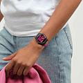 Женские наручные часы Swatch DISTORT MODE SO32B121 — это стильный и современный аксессуар для тех, кто ценит лёгкость и комфорт. На черном циферблате этих часов размещен броский цветной принт с надписью: «Interdiction not allowed» («Запреты недопустимы»). Корпус выполнен из биокерамики,  диаметром 41 мм и толщиной 9.85 мм, что обеспечивает долговечность и утончённый внешний вид. Циферблат защищён органическим стеклом, устойчивым к повреждениям. Модель оснащена кварцевым механизмом, обеспечивающим высокую точность хода. Стрелки с люминесцентным покрытиемЛюминесцентное покрытиеПозволяет считывать показания времени в темноте. Производители наносят на стрелки, часовые индексы, безель или поверхность циферблата светонакопительный состав, дающий холодное свечение.. Силиконовый ремешок на стандартной застёжке гармонично дополняет корпус и обеспечивает комфортное ношение. Водозащита 30 метров позволит защитить корпус от случайных брызг или капель дождя. Эти часы подойдут для повседневного ношения и станут ярким акцентом в вашем наряде.