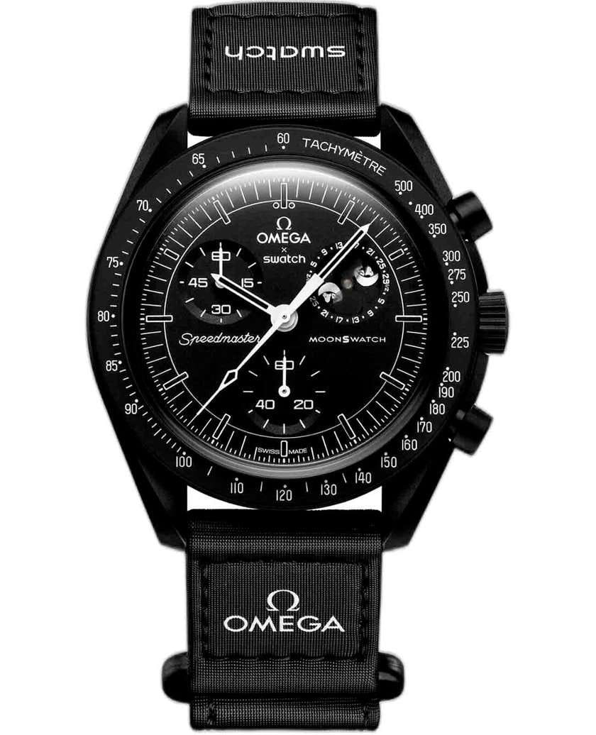Швейцарские часы Swatch x Omega Bioceramic Moonswatch Mission to The Moonphase - New Moon SO33B700 с хронографом