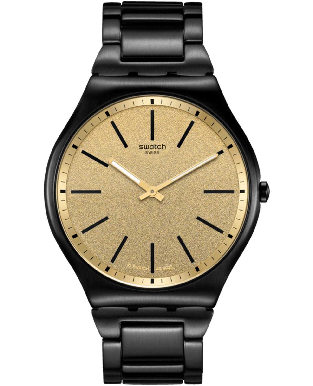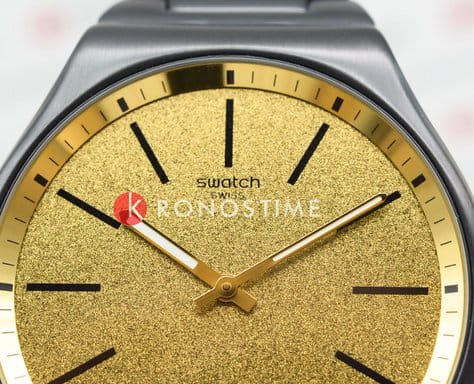 Часы Swatch SS07B109G — это стильный и современный аксессуар для тех, кто ценит лёгкость и комфорт. Часы идеально подойдут как для мужчин, так и для женщин. Эти великолепные ультратонкие часы из нержавеющей стали c PVDPVDУльтратонкое покрытие наносится в технике вакуумного напыления, сочетает в себе нитрид титана особой прочности со слоем золота или оксида хрома. Несёт в себе декоративную или защитную функцию. покрытием имеют золотистый циферблат с металлическим эффектом Reflective Chromatics, который покрыт минеральным стекломМинеральное стеклоМинеральное стекло представляет собой искусственно выращенный минерал кварца. Такое стекло отличается особой устойчивостью к повреждениям и царапинам. Уступает по некоторым качествам сапфировому стеклу. и на котором размещены черные индексы и золотистые стрелки с люминесцентным покрытиемЛюминесцентное покрытиеПозволяет считывать показания времени в темноте. Производители наносят на стрелки, часовые индексы, безель или поверхность циферблата светонакопительный состав, дающий холодное свечение.. Часы заключены в полированный корпус с черным PVDPVDУльтратонкое покрытие наносится в технике вакуумного напыления, сочетает в себе нитрид титана особой прочности со слоем золота или оксида хрома. Несёт в себе декоративную или защитную функцию. покрытием и закреплены на таком же регулируемом браслете c застёжкой «бабочка»Застёжка "бабочка"Такой вид застёжки дополняется предохранителями, помогающими избежать случайного раскрытия браслета. Обладают изящным исполнением. . Водозащита 30 метров делает часы практичными для повседневного использования. Эти часы подойдут для повседневного ношения и станут ярким акцентом в вашем наряде.