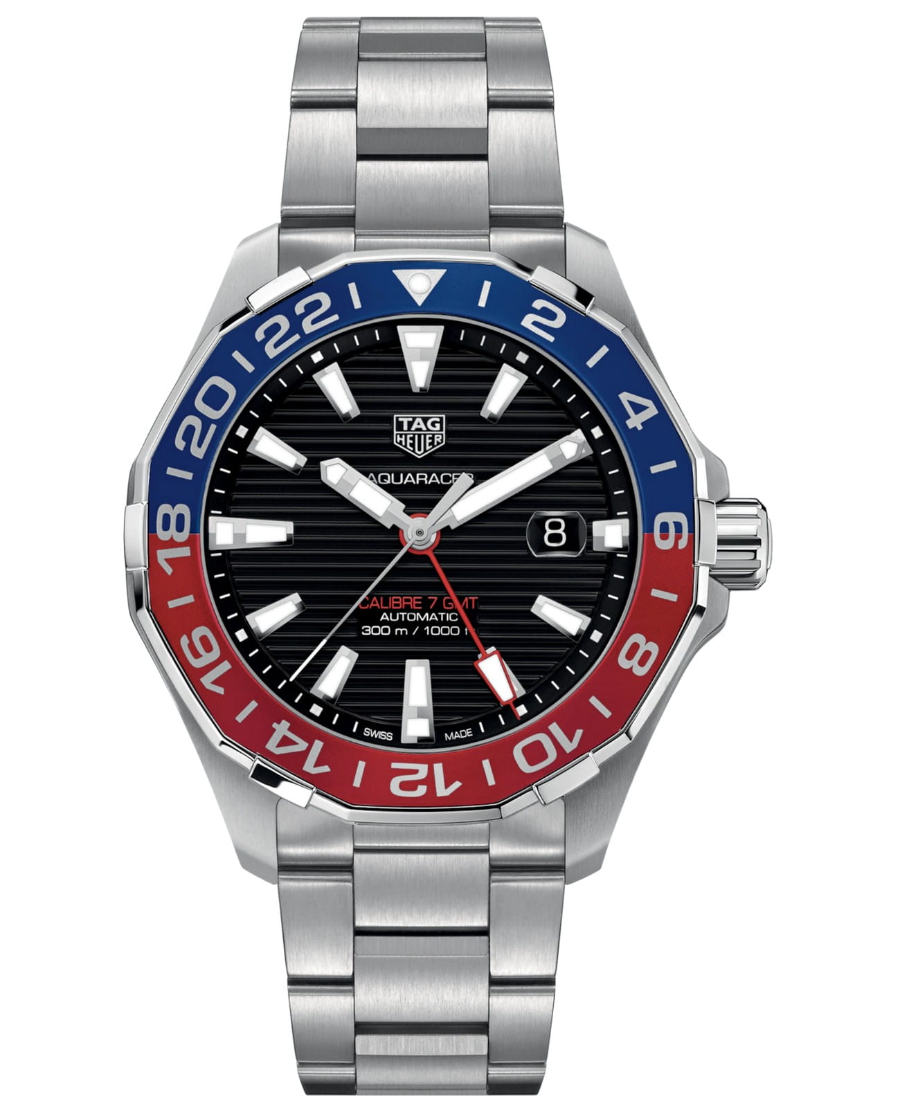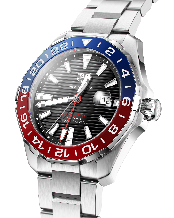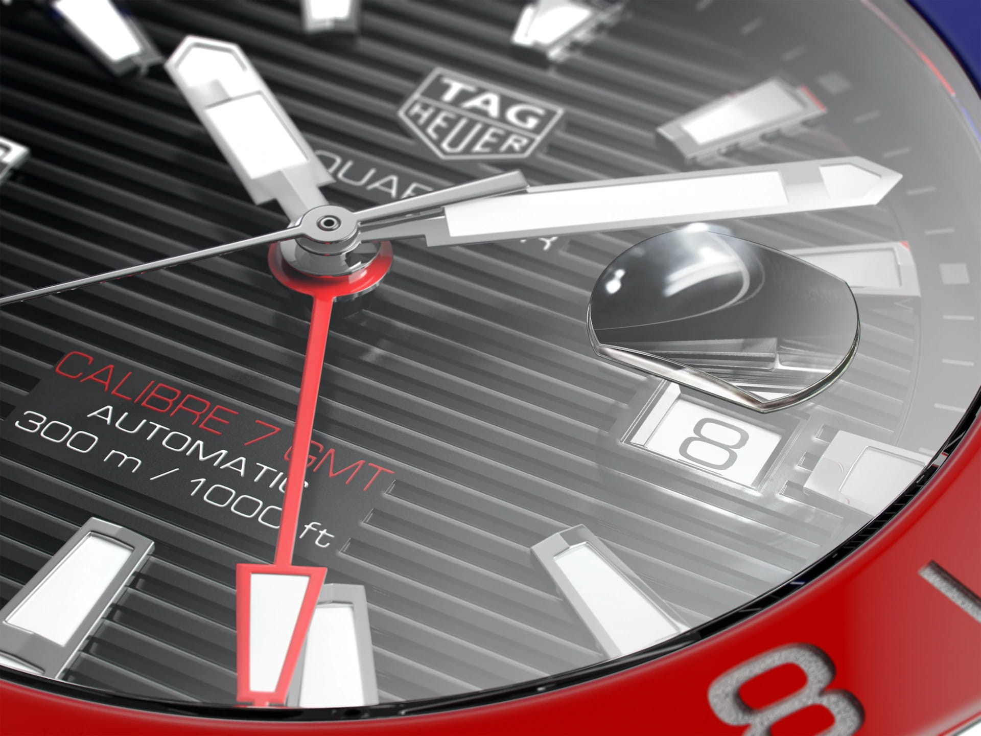 Часы Aquaracer, оснащенные калибром Calibre 7 GMT с большим корпусом диаметром 43 мм и двухцветным безелем с функцией GMT для дополнительных часовых поясов. Отличительный узор из горизонтальных полос на циферблате и специальные люминесцентные маркеры на стрелках и часовых метках обеспечивают превосходную читаемость показаний при слабом освещении или под водой. TAG Heuer Aquaracer WAY201F.BA0927, механический механизм (автоматический калибр) с высокой точностью. Сапфировое стекло устойчивое к появлению царапин, обладающее высокой прозрачностью. Класс водозащиты: 300 метров, позволит плавать, нырять и заниматься другими водными видами спорта. Корпус часов изготовлен из стали, цвета.