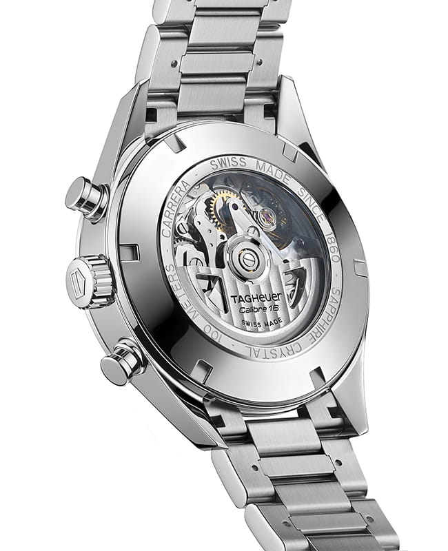 Автоматический хронограф с индикацией даты и дня недели. Модель отличается счетчиками в положениях «3 часа», «6 часов» и «9 часов», источником вдохновения для создания которых послужил мир автоспорта. Часы оснащены механизмом Calibre 16, который можно рассмотреть через заднюю крышку из сапфирового стекла, и дополнены черным ремешком из кожи аллигатора. TAG Heuer Carrera CV2A1AC.BA0738, механический механизм (автоматический калибр) с высокой точностью. Сапфировое стекло устойчивое к появлению царапин, обладающее высокой прозрачностью. Класс водозащиты: 100 метров, позволит плавать, нырять и заниматься другими водными видами спорта. Корпус часов изготовлен из стали, цвета.