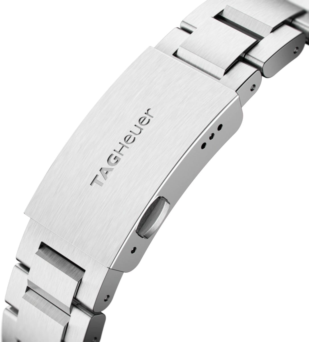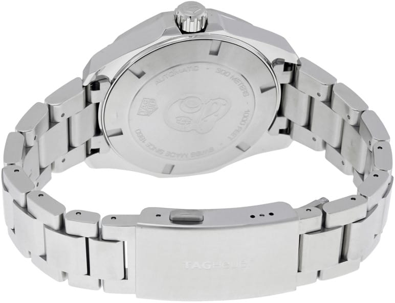 Автоматические мужские часы TAG Heuer Aquaracer Calibre 5 Automatic WAY201A.BA0927, механический механизм (автоматический калибр) с высокой точностью. Сапфировое стеклоСапфировое стеклоПрочный и надёжный материал из кристалла сапфира синтетического происхождения, характеризующийся особой твёрдостью и устойчивостью к царапинам и повреждениям. устойчивое к появлению царапин, обладающее высокой прозрачностью. Класс водозащиты: 300 метров, позволит плавать, нырять и заниматься другими водными видами спорта. Корпус часов изготовлен из стали. Стальной браслет на раскладной застёжкеРаскладная застёжкаТакой тип застёжки используется только на браслетах из металла. Она никогда не раскрывается полностью, происходит разделение на 2 и более частей. Раскладывающая застёжка снизит вероятность потери часов к минимуму.. В механизме 25 или 26 камней в зависимости от исполнения, частота 28800 полуколебаний в час. Запас хода 38 часов. Окошко даты с увеличительным стеклом. Керамический безельБезельВнешний ободок, закрепляющий стекло. В спортивных часах так называется поворотное кольцо с делениями на циферблате, выполняет роль таймера – замеряет отрезки времени на шкале. Неподвижный безель – элемент декора. Однонаправленно вращающийся безель на дайверских часах позволяет фиксировать моменты погружения и выныривания на поверхность. вращается в одном направлении. Завинчивающаяся заводная головка с защитой. Завинчивающаяся задняя крышка. Накладные полированные граненые индексы с родиевым покрытием. Стрелки и метки с люминесцентным покрытиемЛюминесцентное покрытиеПозволяет считывать показания времени в темноте. Производители наносят на стрелки, часовые индексы, безель или поверхность циферблата светонакопительный состав, дающий холодное свечение..