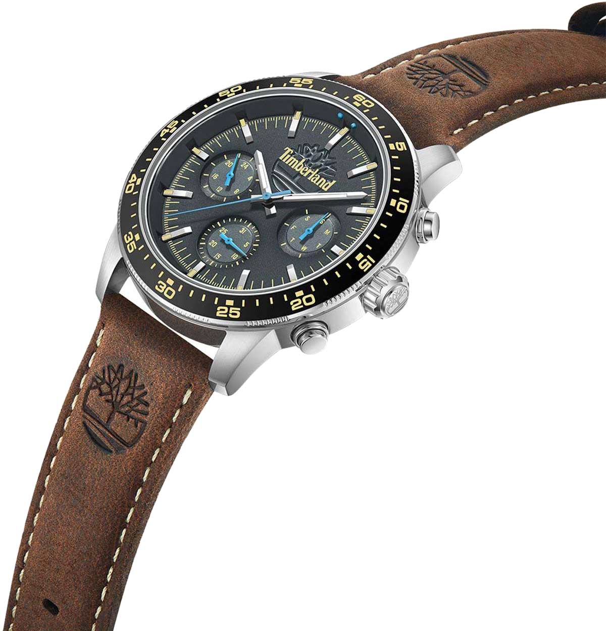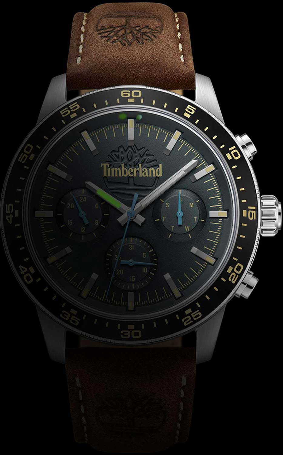 Американские мужские часы Timberland Parkman TDWGF0041301 имеют кварцевый механизм с высокой точностью. Класс водозащиты: 50 метров, позволит защитить корпус от случайных брызг или капель дождя. Корпус часов изготовлен из стали. Прочное минеральное стеклоМинеральное стеклоМинеральное стекло представляет собой искусственно выращенный минерал кварца. Такое стекло отличается особой устойчивостью к повреждениям и царапинам. Уступает по некоторым качествам сапфировому стеклу.. Стрелки c люминесцентным покрытиемЛюминесцентное покрытиеПозволяет считывать показания времени в темноте. Производители наносят на стрелки, часовые индексы, безель или поверхность циферблата светонакопительный состав, дающий холодное свечение.. БезельБезельВнешний ободок, закрепляющий стекло. В спортивных часах так называется поворотное кольцо с делениями на циферблате, выполняет роль таймера – замеряет отрезки времени на шкале. Неподвижный безель – элемент декора. Однонаправленно вращающийся безель на дайверских часах позволяет фиксировать моменты погружения и выныривания на поверхность. из алюминия с PVD-покрытиемPVDУльтратонкое покрытие наносится в технике вакуумного напыления, сочетает в себе нитрид титана особой прочности со слоем золота или оксида хрома. Несёт в себе декоративную или защитную функцию.. Кожаный ремешок на стандартной застежке.