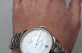 Светлый узорчатый циферблат дополнен перламутровой вставкой, оригинальное оформление позволит владелице часов всегда привлекать внимание окружающих. Автоматический калибр Powermatic 80Powermatic 80Эксклюзивный калибр от швейцарской компании ETA с увеличенным запасом хода до 80 часов за счёт удлинённой заводной пружины. Характеризуется улучшенной системой спуска со сниженным трением. с увеличенным запасом хода до 80 часов. Двухстороннее антибликовое покрытие сапфирового стекла. Прозрачная задняя крышка. Окошко даты. Габариты: 32 x 32 x 10,7 мм.