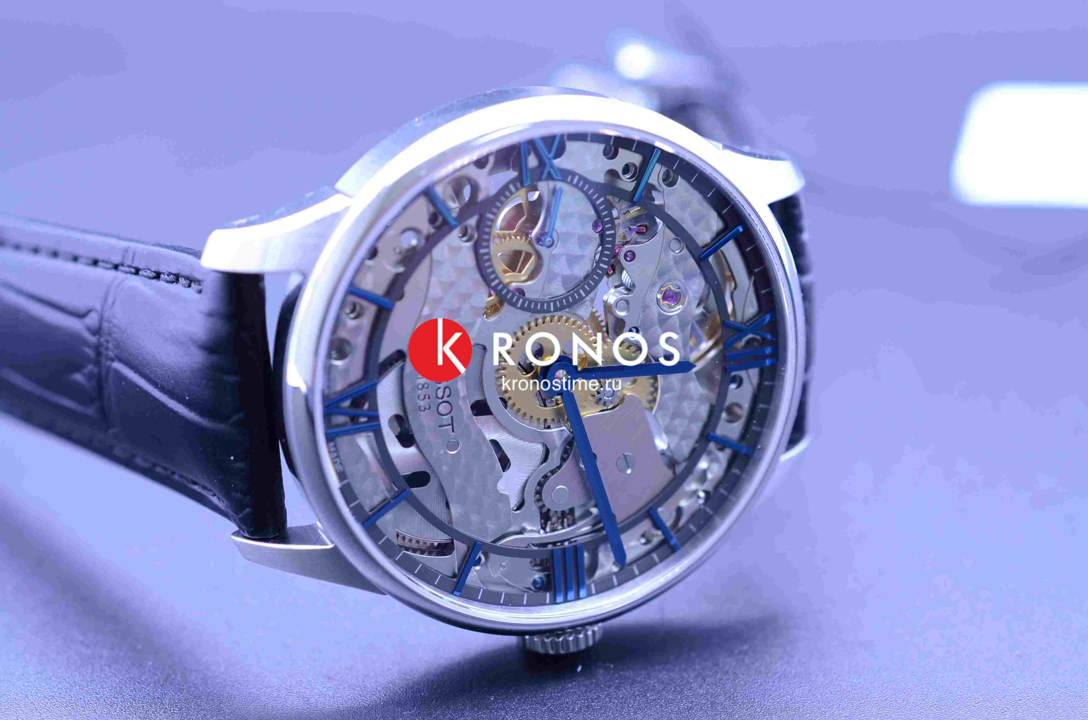 Часы-скелетоны выгодно подчеркнут индивидуальный стиль, став его неотъемлемой частью. Особенность такой модели заключается в прозрачном циферблате и задней крышки, в данном случае используется прочное стекло из сапфира с двухсторонним антибликовым покрытием. Мы можем видеть всю работу швейцарского высокоточного механизма ETA 6497, следить за движением его составляющих. Любителям истоков часового мастерства понравится возможность ручного завода. Оттенок винтажа придают синие римские цифры. Аксессуар комплектуется чёрным ремешком из натуральной кожи. предотвратит случайное расстёгивание. Габариты: 42 x 42 x 11,1 мм.