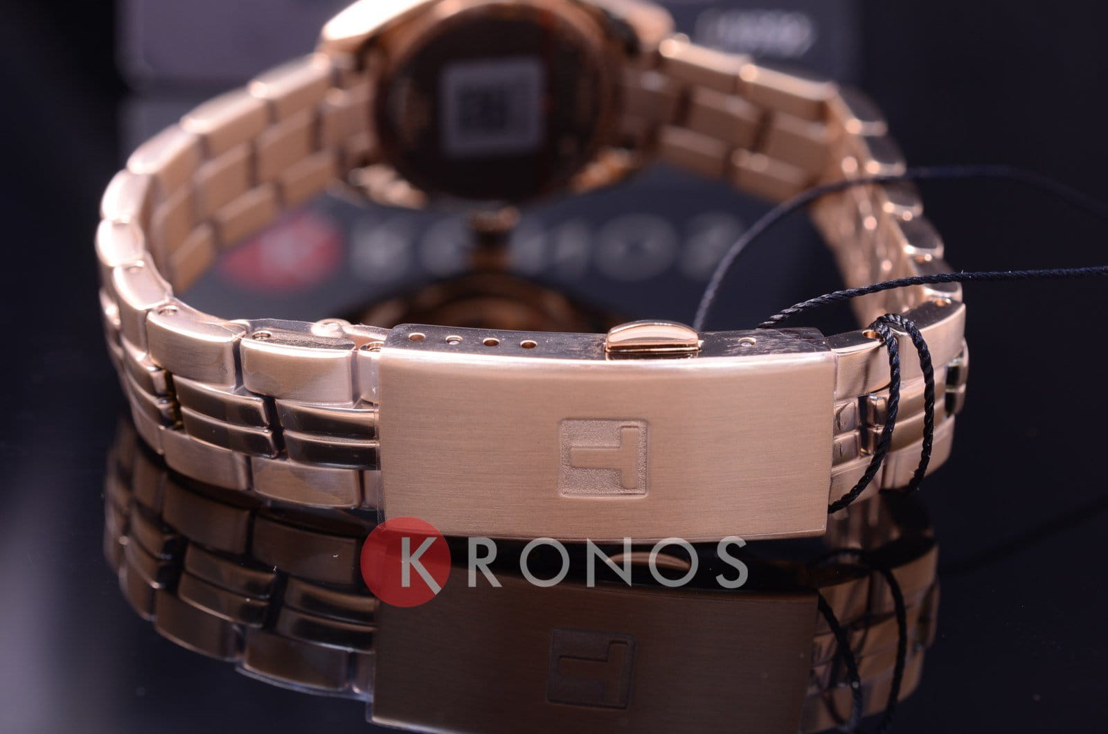 Элегантная модель выполнена в классическом стиле, роскоши добавляет PVD-покрытиеPVDУльтратонкое покрытие наносится в технике вакуумного напыления, сочетает в себе нитрид титана особой прочности со слоем золота или оксида хрома. Несёт в себе декоративную или защитную функцию. в цвете розового золота. Часы настоящего швейцарского качества оснащены высокоточным кварцевым механизмом ETA F03.111. Сапфировое стекло противостоит образованию царапин. Стрелки с люминесцентной подсветкойЛюминесцентное покрытиеПозволяет считывать показания времени в темноте. Производители наносят на стрелки, часовые индексы, безель или поверхность циферблата светонакопительный состав, дающий холодное свечение. . Водонепроницаемость 100 метров. Индикация текущего числа, EOLEOLПредставляет собой систему, уведомляющую владельца часов о необходимости замены элемента питания. За 2 недели до полного разряда батарейки секундная стрелка перестаёт ходить чётко и начинает перепрыгивать на 3-4 деления.. Габариты: 25 x 25 x 6,9 мм.