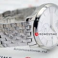 Стильная модель в серебристо-белом исполнении имеет оригинальный узор на циферблате, оригинальный браслет отличается плетением - большое количество мельчайших звеньев. Минималистичный дизайн гармонирует с современными технологиями, часы оснащены высокоточным автоматическим механизмом ETA 2825-2 с запасом хода до 38 часов. Прозрачная задняя крышка. Долговечная хирургическая сталь. Сапфировое стекло. Апертура даты. Габариты: 40 x 40 x 11 мм.