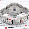 Сдержанный тёмно-синий циферблат со счётчиками хронографаХронографФункция позволяет измерять отрезки времени с особой точностью: часы, минуты, секунды. Верным признаком хронографа является наличие на циферблате 3 дополнительных окошек-счётчиков. акцентирует всё внимание на себе. Стрелки имеют люминесцентную подсветкуЛюминесцентное покрытиеПозволяет считывать показания времени в темноте. Производители наносят на стрелки, часовые индексы, безель или поверхность циферблата светонакопительный состав, дающий холодное свечение., чтобы использование часов в темноте не вызывало затруднений. Привлекательный внешний вид. Кварцевый механизм ETA G10.212. Хирургическая сталь устойчива к повреждениям и ударам. Водозащита до 10 бар. . Секундомер, тахиметрТахиметрРазмеченная шкала, располагается на ободке или безеле часов. Тахиметр позволяет рассчитать скорость на определённом участке пути, расстояние измеряется в километрах или милях., календарь. Габариты: 42,5 x 42,5 x 11,2 мм.
