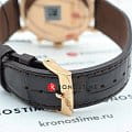 Модель не отличается богатым декором или броскими деталями, её особенность заключается в наличии полезного функционала и минималистичном строгом дизайне. Наручные часы привлекают золотистыми переливами корпуса с PVD-покрытиемPVDУльтратонкое покрытие наносится в технике вакуумного напыления, сочетает в себе нитрид титана особой прочности со слоем золота или оксида хрома. Несёт в себе декоративную или защитную функцию., циферблат было решено оставить в белом цвете. Они комплектуются высокоточным кварцевым механизмом ETA G10.212. Сохранение водонепроницаемости при давлении до 50 бар. Ремешок из натуральной кожи. Надёжное сапфировое стекло. ХронографХронографФункция позволяет измерять отрезки времени с особой точностью: часы, минуты, секунды. Верным признаком хронографа является наличие на циферблате 3 дополнительных окошек-счётчиков., секундомер, отображение даты. Габариты: 41 x 41 x 10,2 мм.